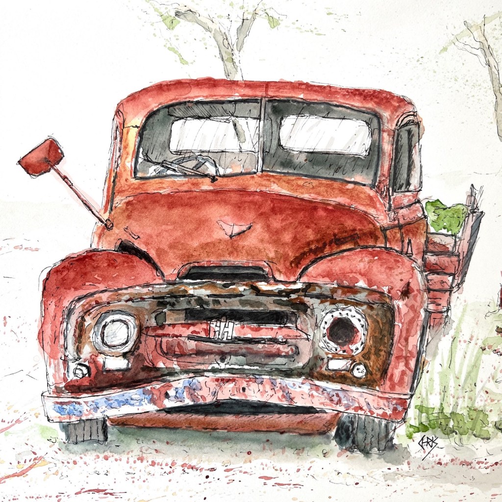 This also moved him from his normal birds and landscapes into sketching buildings, old cars and tractors which he thoroughly enjoys.