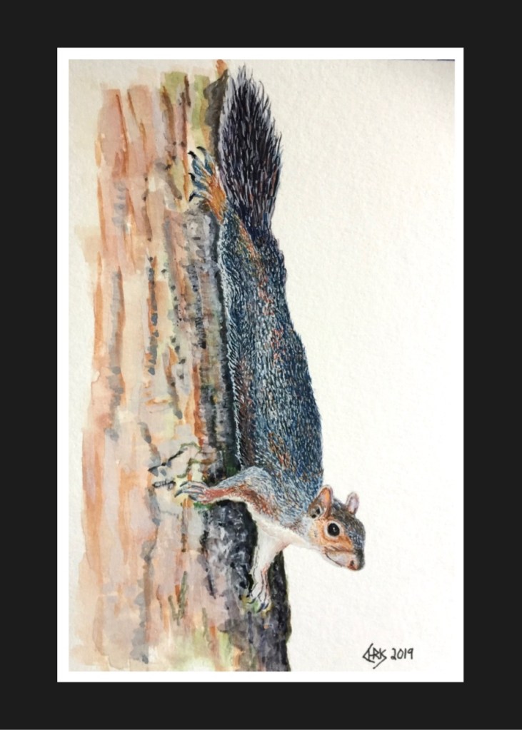 The following are a few progress shots of the Grey Squirrel, I painted in around 4hrs.