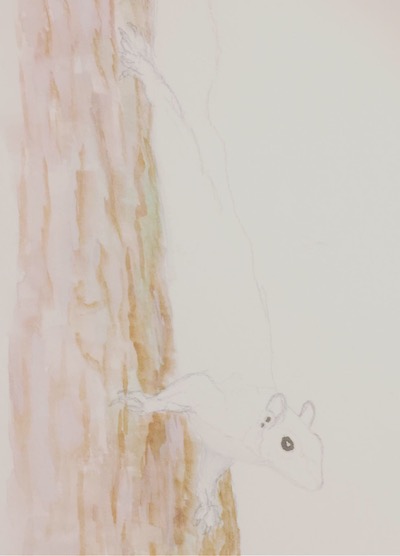First starting off with a pencil outline of the squirrel and a rough guide to where I would place the dark shadows of the tree bark.