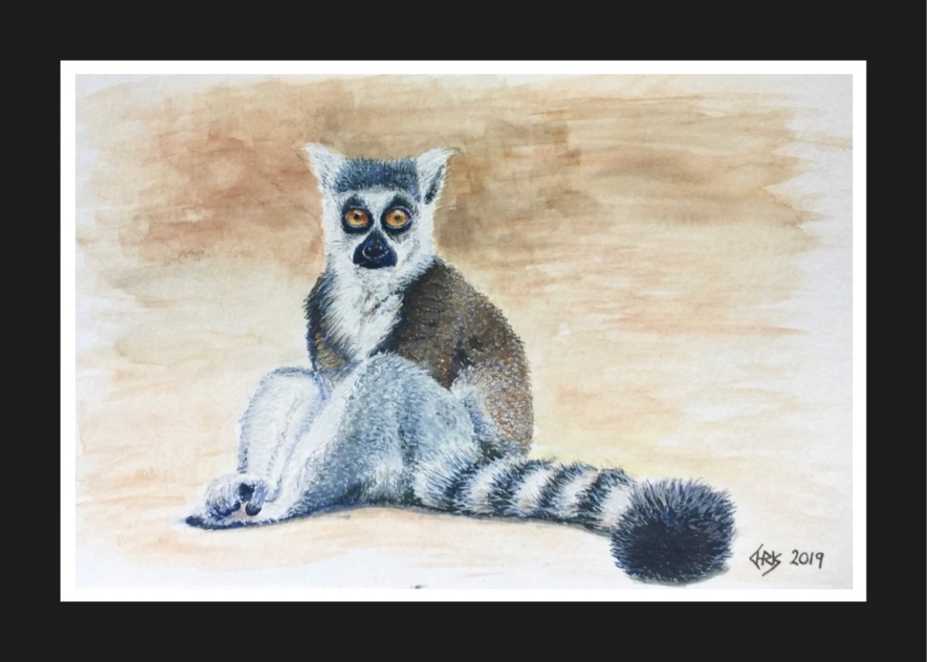 My sister loves Lemurs and I was sending her photos whenever they were doing something interesting or having a cute pose. So one of these two Lemurs I painted and this became my sisters Christmas present.