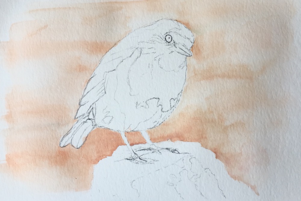 After about 4hrs later moved onto a rough undercoat of colour for the robin.