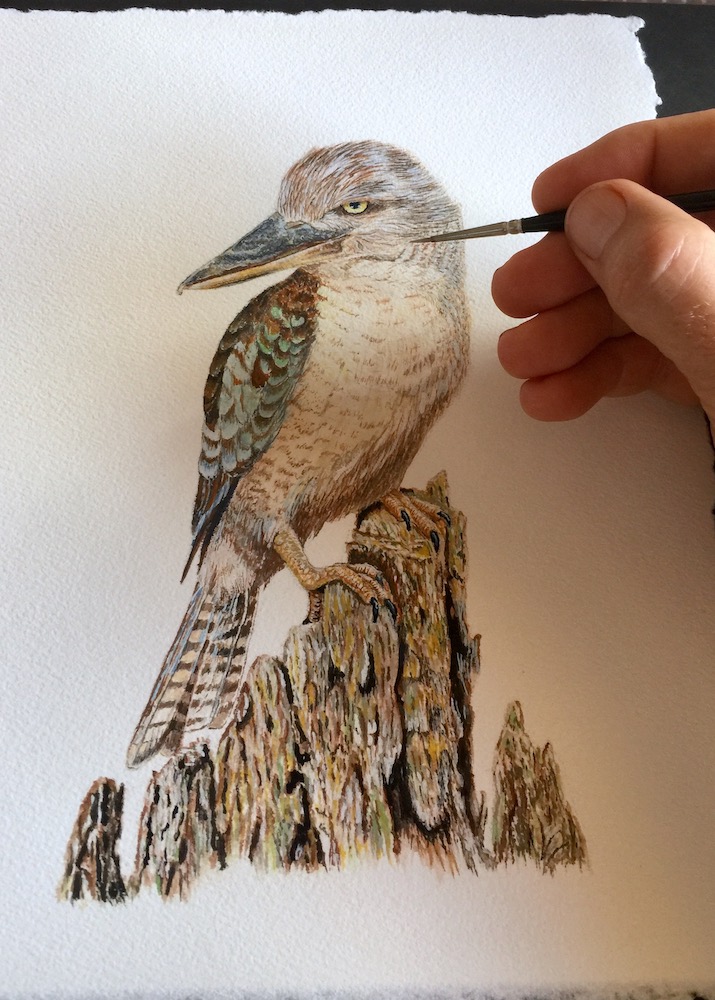 I started this kookaburra at my sisters place over Christmas and I managed to get a few hrs painting while people were playing on their phones.