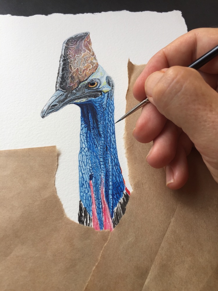 I’ve been wanting to paint a cassowary for a while now, but sticking to my rule of only painting from my own photographs, this was a little difficult.
