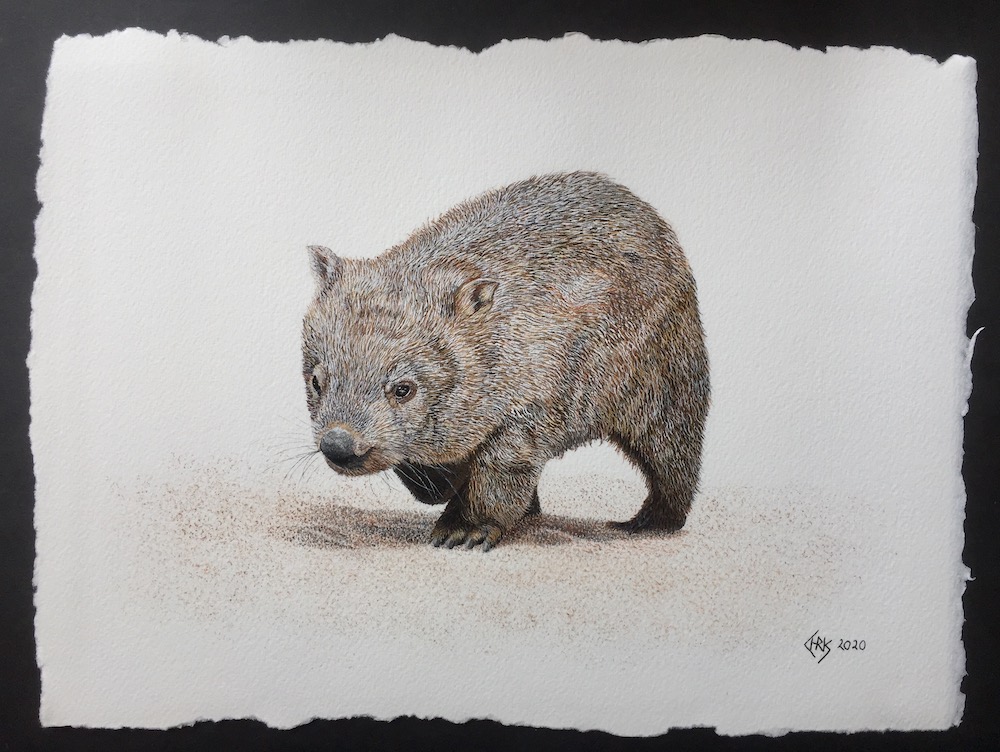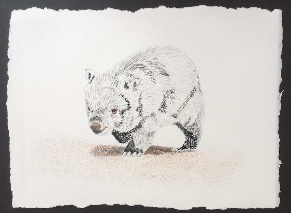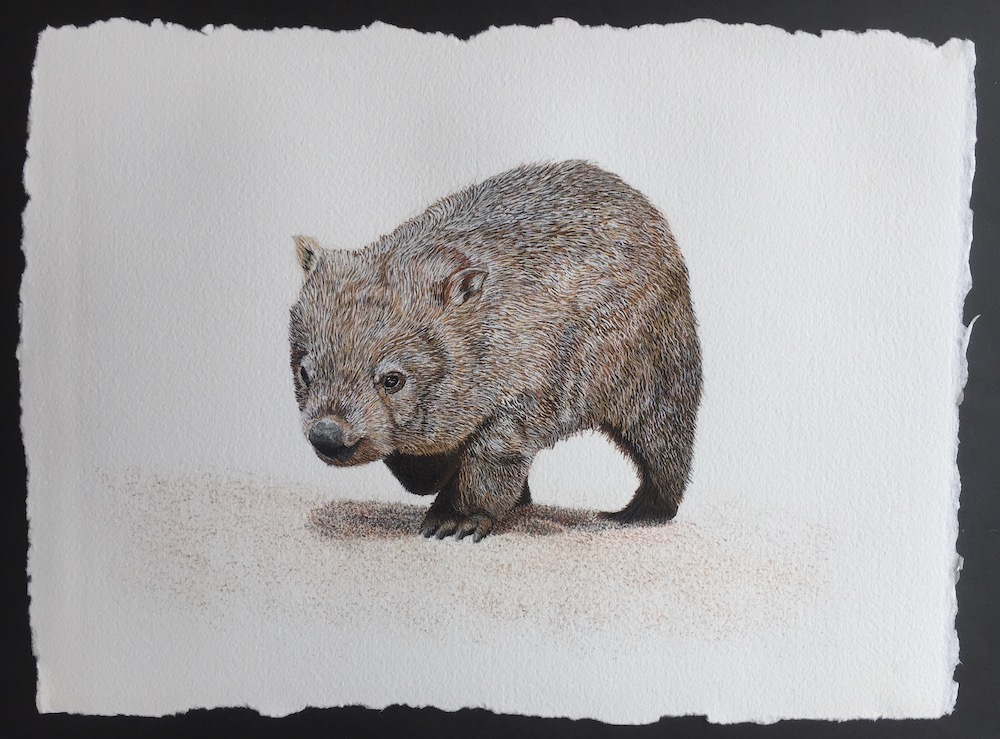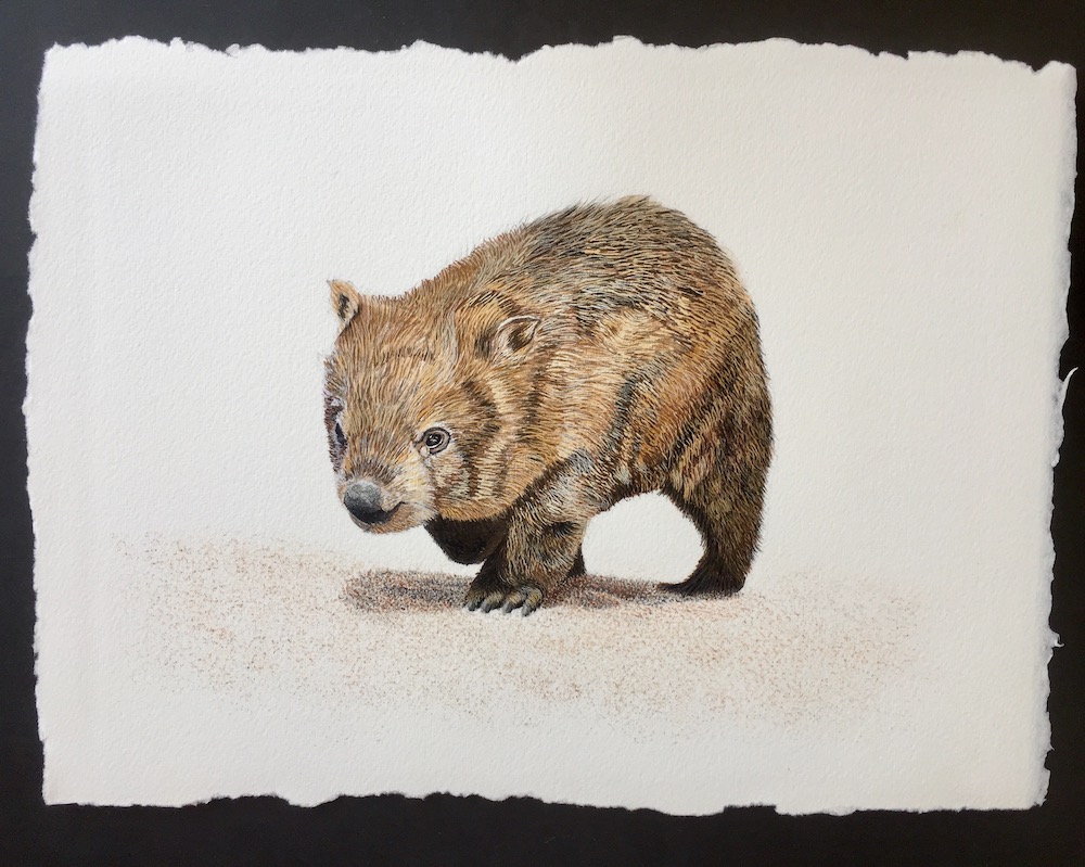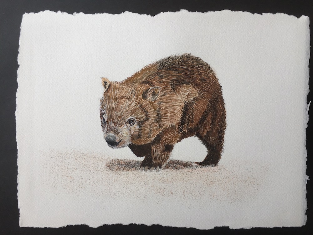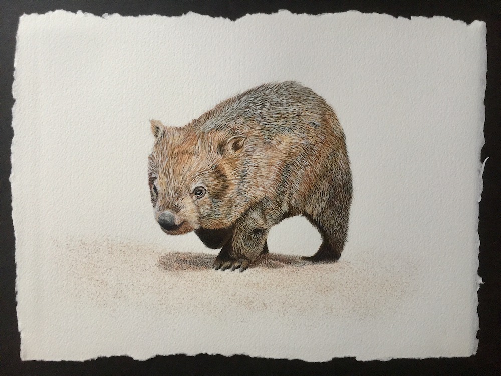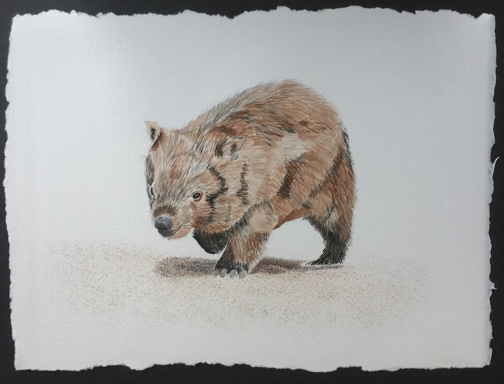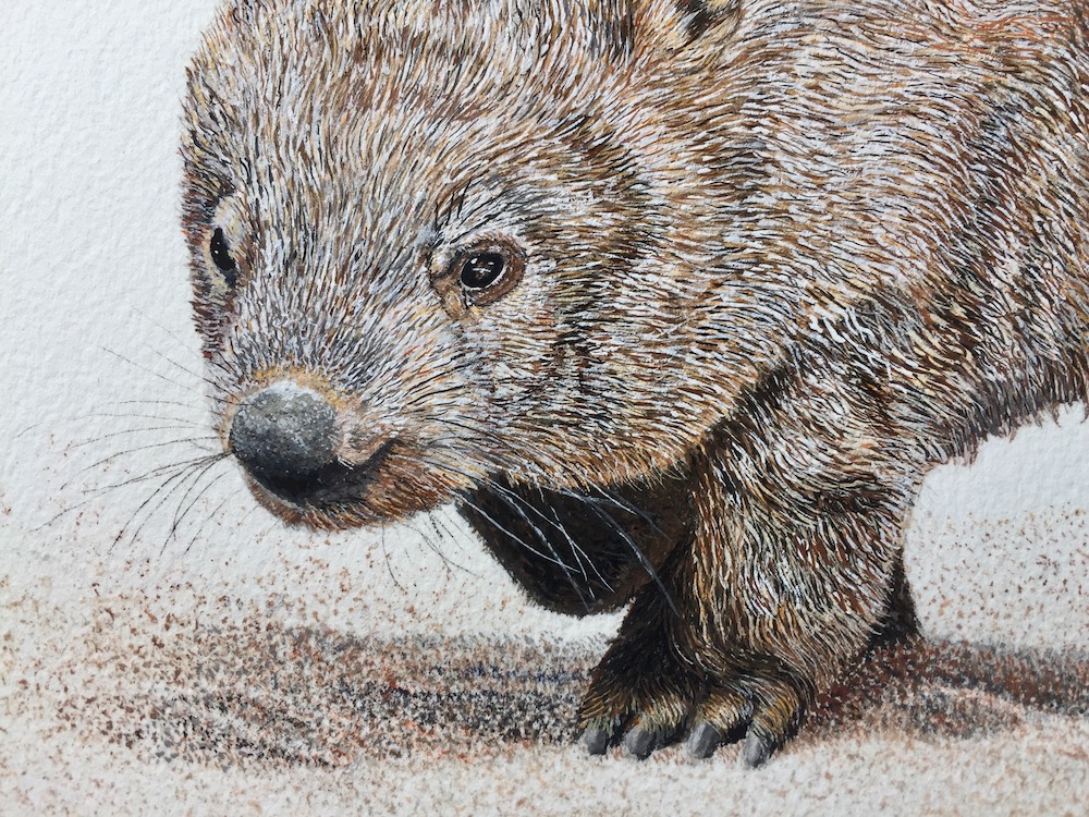 Then I used a fine brush to add a few more darker tones under the wombats belly, this will later be re touched once the animal is complete.