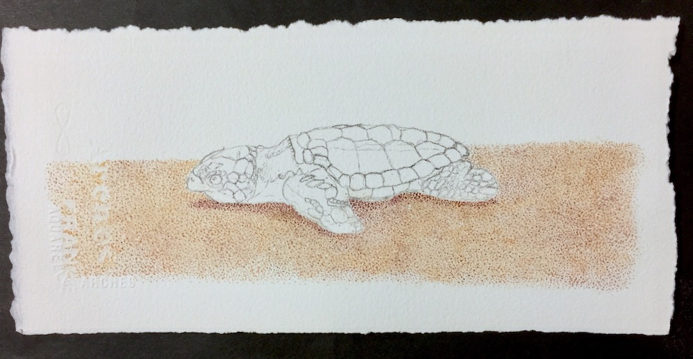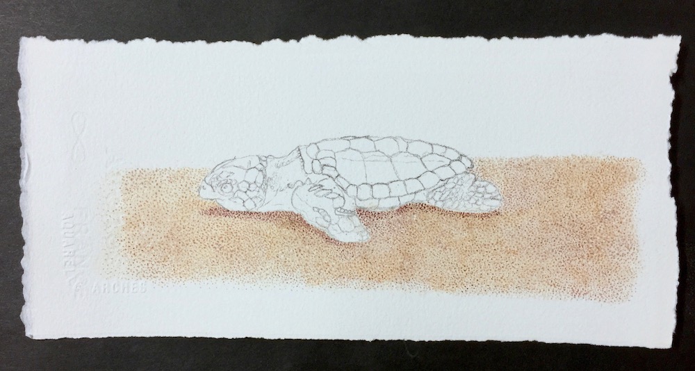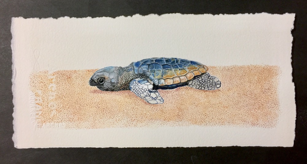 Overall this baby turtle was a pleasure to paint and also to witness its struggle down the beach.