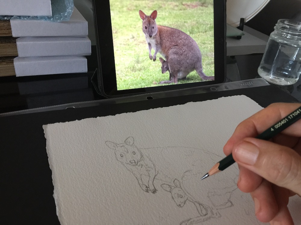 After select one of my own images on my iPad, I start with a pencil outline using a 4B pencil. Once I’m happy this it I almost rub out most of the pencil work so the graphite will not smug the paper..