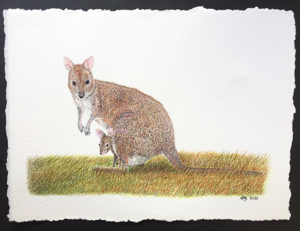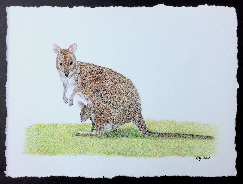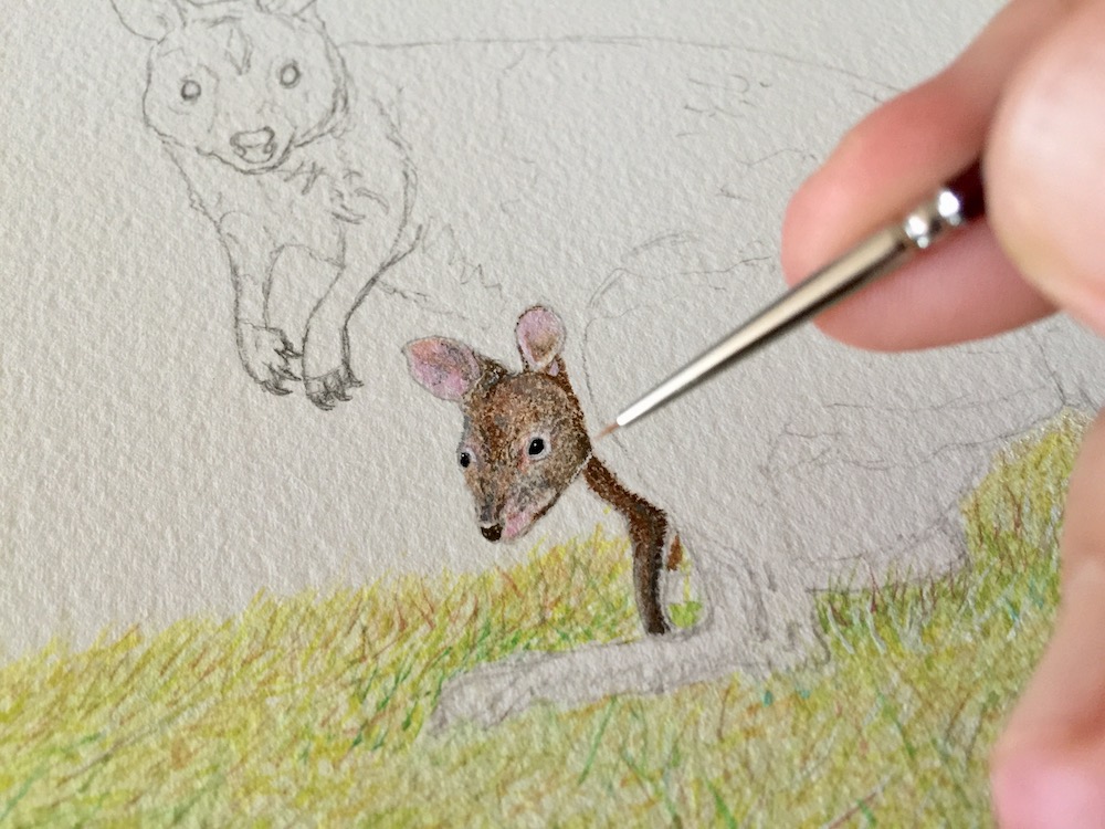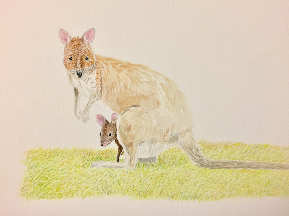 My confidence was sort lived and the Pademelons face started looking like a fox, I was about ready to give up. It was getting late and I thought this painting had the better of me had I finally come across a painting that was going in the bin. In this case I slept on it and started again in the morning.
