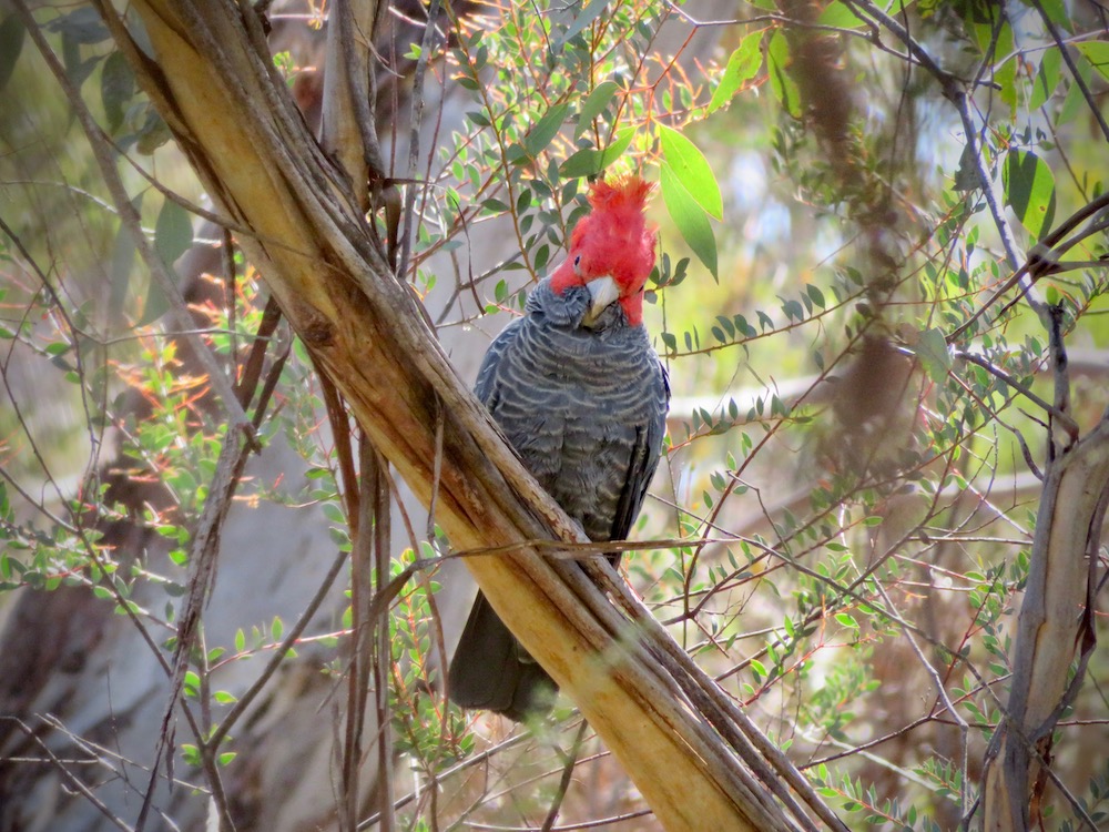 This is where we spotted our single gang gang cockatoo, it was as curious of us as we were of it. I was amused how his head feathers were blowing in the wind and it just watched us, turning to let us take photos from a variety of poses.