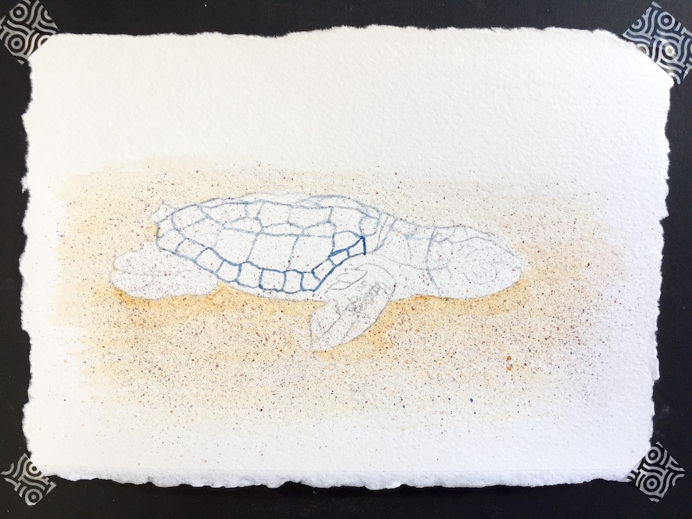 I outlined the turtles shell patterns and then added some shadows under the turtle.
