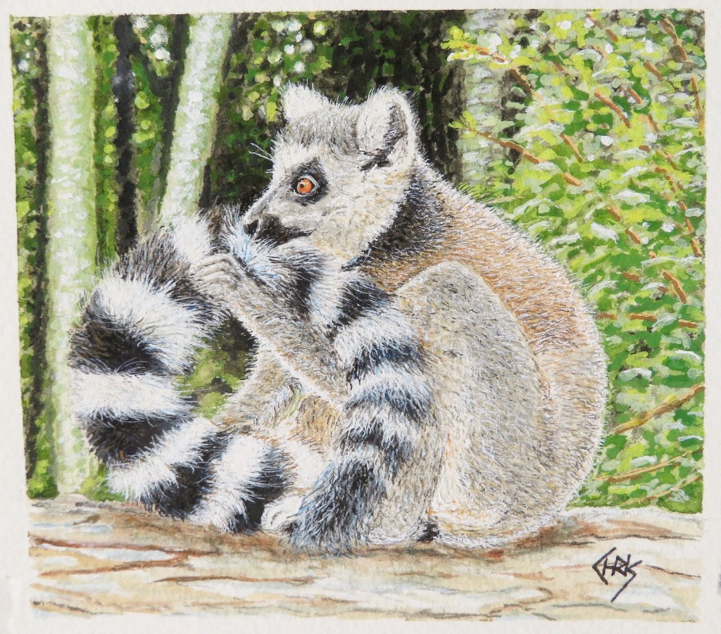 This was definitely an all day painting and I don’t think that I could ever paint a Lemur with this much detail and expression again. So I’m thinking that this will be my last Lemur painting and absolutely love it to bits.
