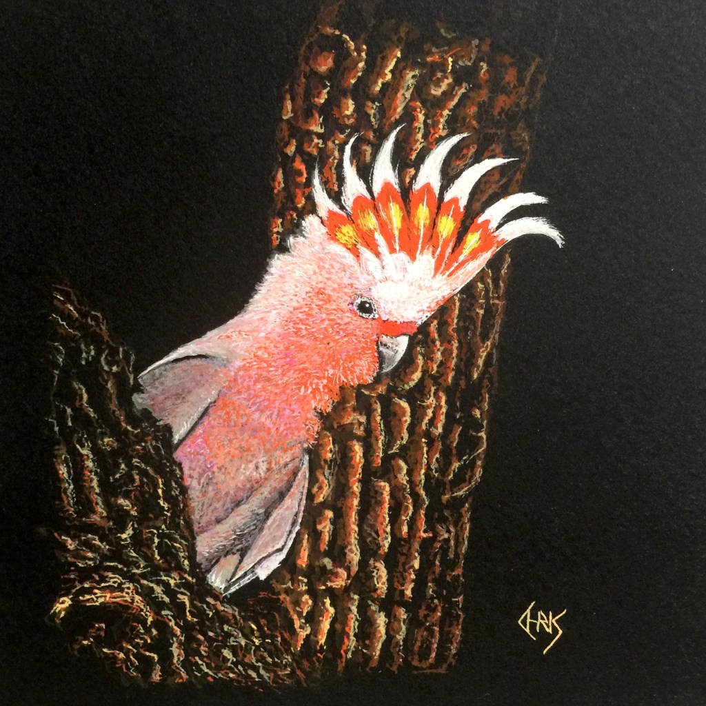 Major Mitchell’s Cockatoo was a gift for a friend and I used one of his own photographs which was nice to paint from as I don’t have a photo of the cockatoo with its crest up.