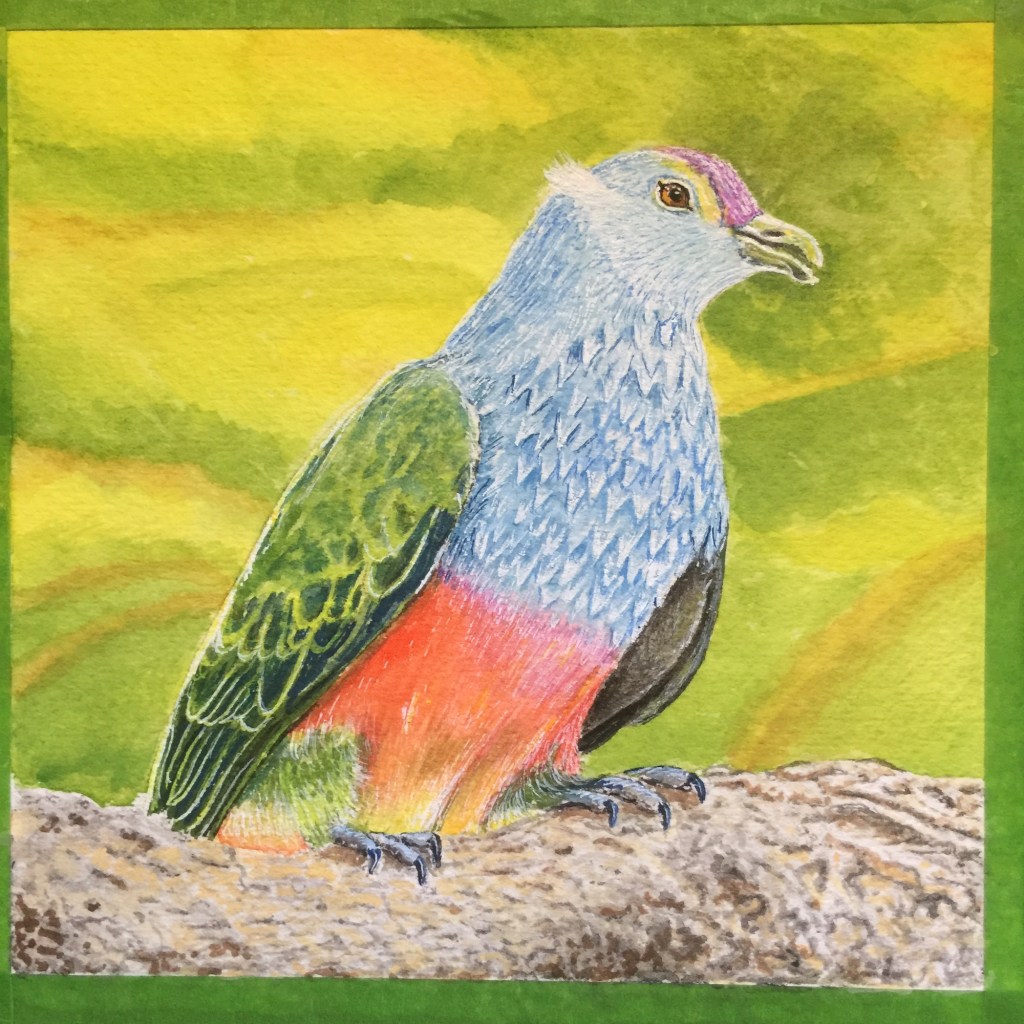 I liked painting the dove as I got to use a few colours that I wouldn’t normally use. The blue chest was a little difficult with all the pointy feather patterns but after awhile I was getting the hang of them.