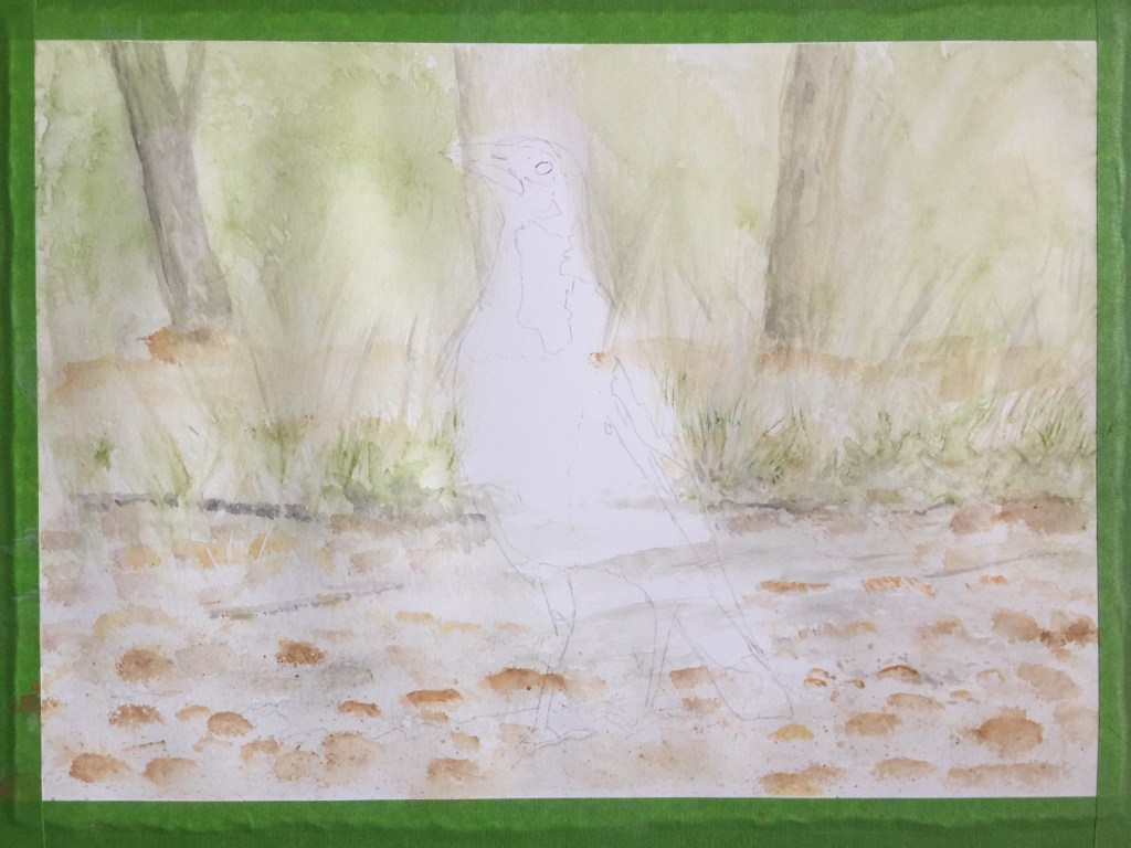 The best part of the painting in my opinion is the eyes and beak, this gives the bird character. Also I add a little more detail to the ground adding stones and twigs.