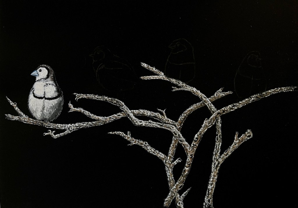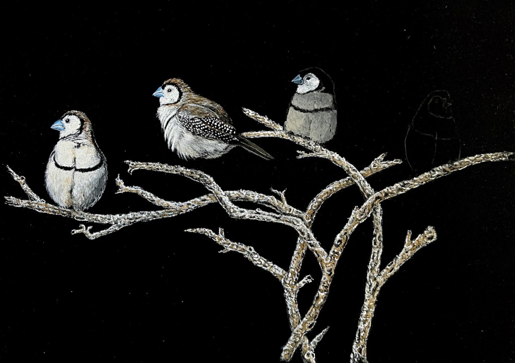 Last part of the painting was to paint the feet, it was a late night and the next morning I realised that one of the birds didn’t have any feet at all.