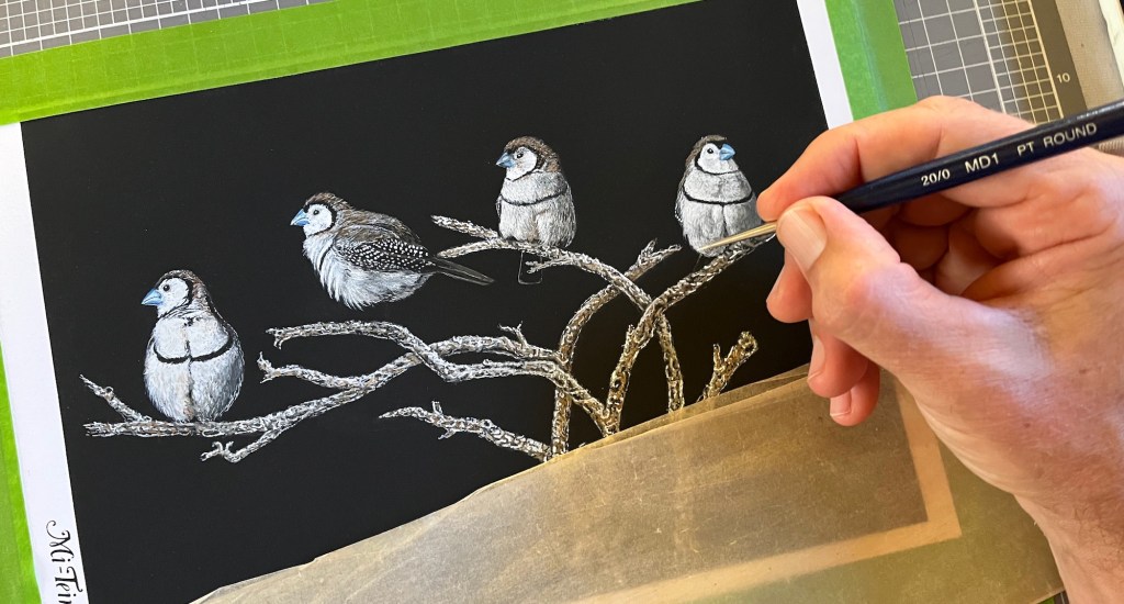 I was going to paint the undercoat for all birds and then work on the details later. I total forgot and just started with the details until I finished the painting all but the feet as my photo wasn’t very clear.