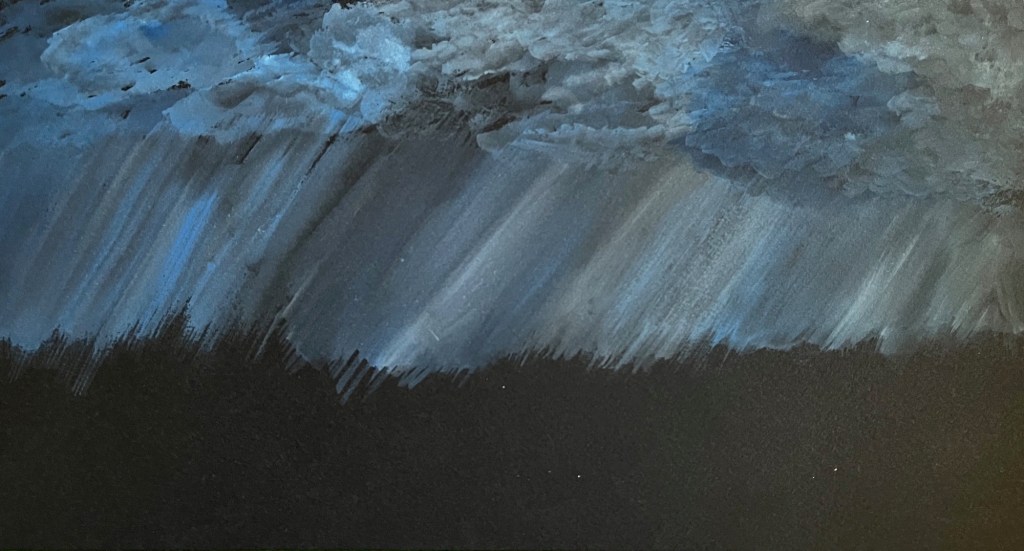 The next few layers of paint I didn’t dilute them as much and this seemed to work much better. I started adding blues and a slight pink which is hard to see in the photo from my iPhone.