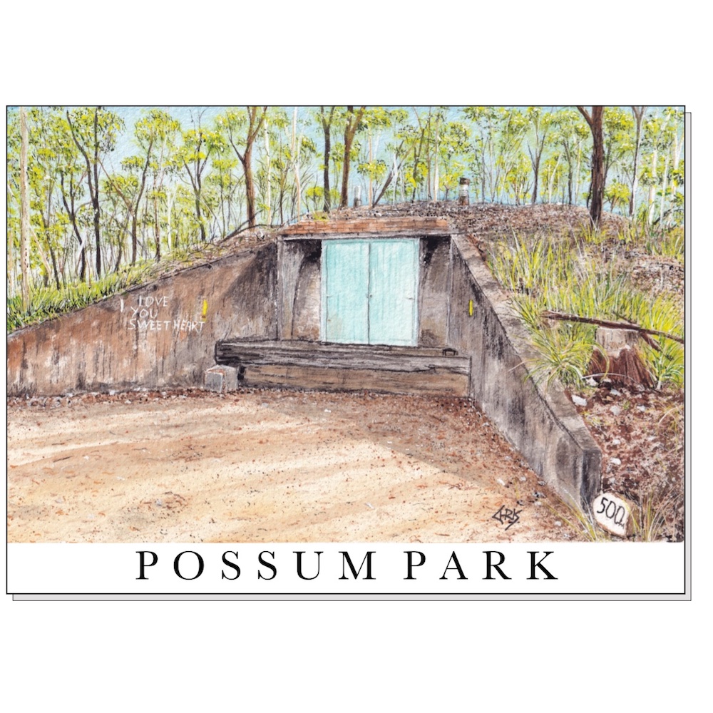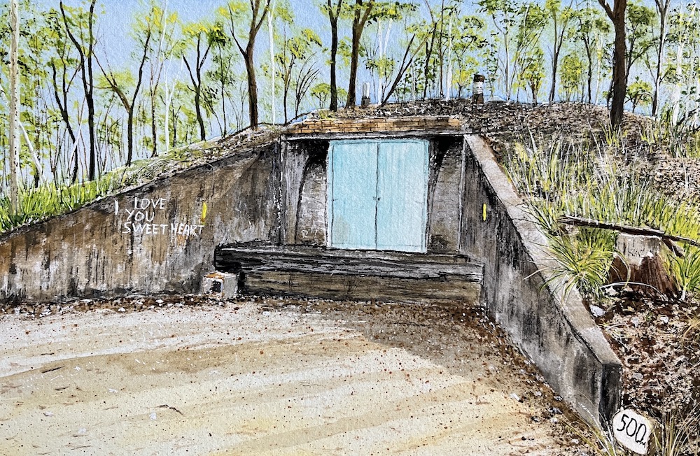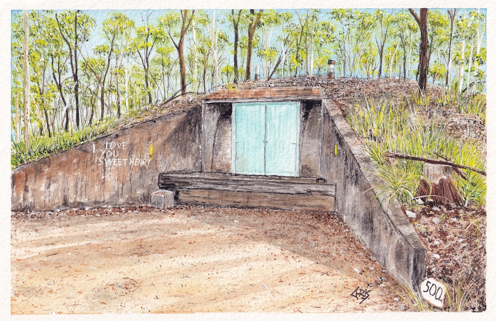 So for the first two weeks in January I was busily painting scenes from around Possum Park, which include bunker No 1, the bunker walk, a TAA Plane, QLD train carriages and the perimeter fence all on the property.