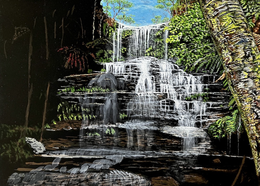Another day spent painting all the water cascading over the rocks at Junction falls. I used permanent white and a little bit of sky blue for the water. Then a few different browns for the rock ledges.