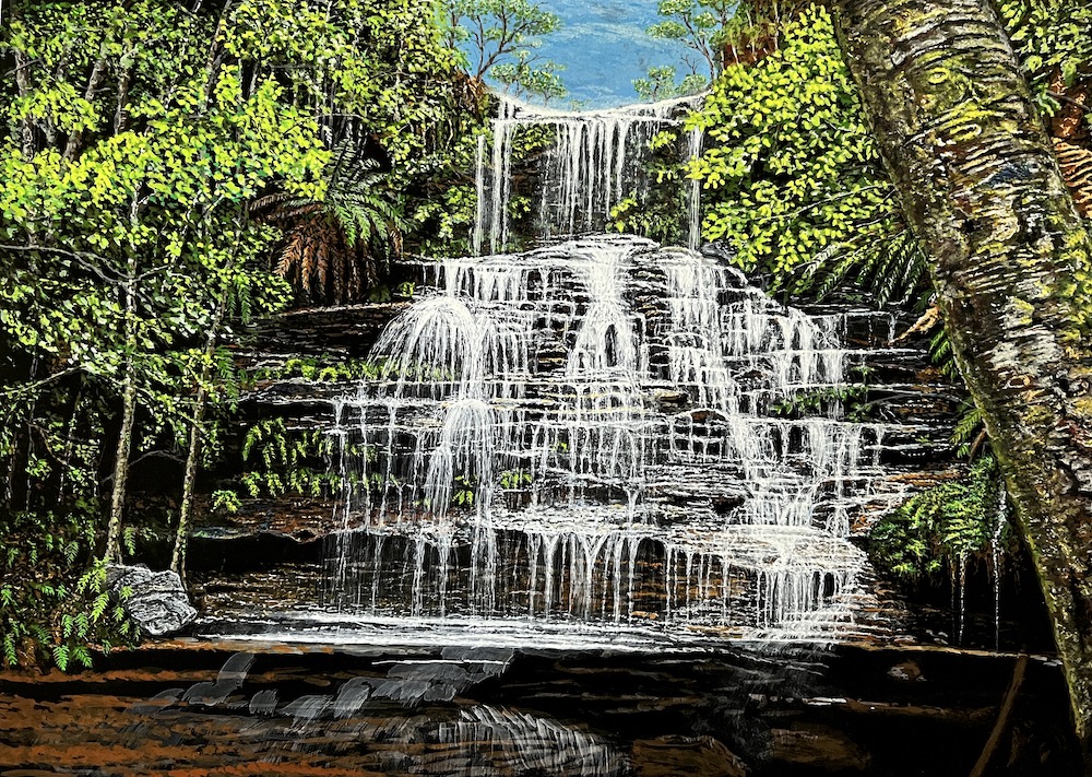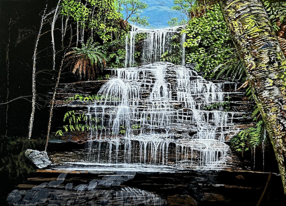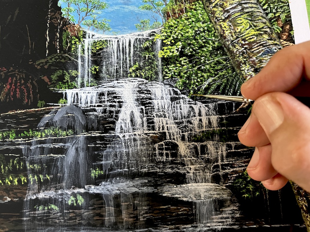 The last part of the painting was probably the hardest trying to get all the water falling over the rocks and still have the rocks underneath visible.