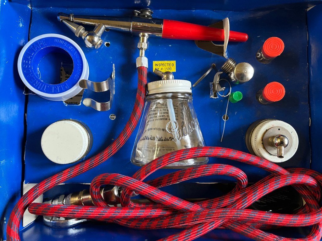 After I used some low tack masking tape to work out where the sky and reflection would be I started using my airbrush.