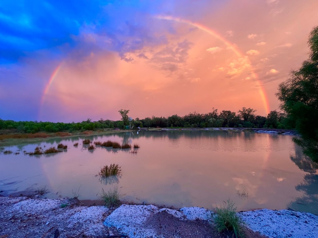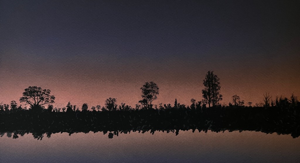 The good side to the bad weather was, we had some amazing sunsets and the dams were showing some fantastic reflections. The rainbow reflection was just incredible and I have never seen something that looked like it was a huge planet in the sky before. I would love to paint this but not sure how to tackle something as complex as a reflected rainbow. Maybe will have to try it in oils one day.