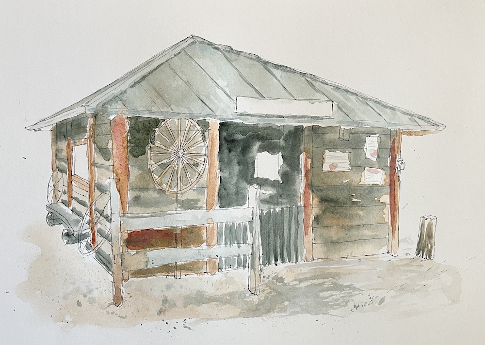 Watercolour added and this time I was trying to add a little more colour to the building because it was almost black timber.
