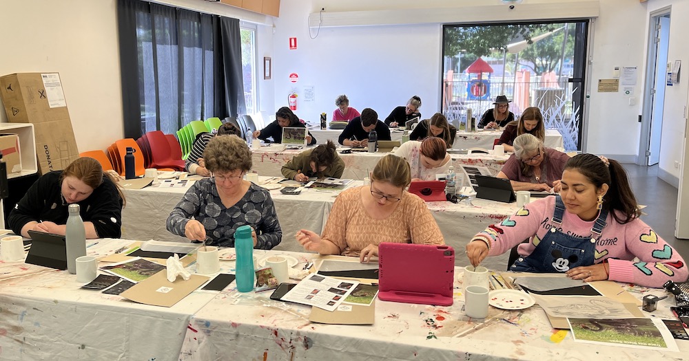 People have approached me over the past few months asking if I was going to teach some art classes, so I thought this might be a good idea. I mentioned this to my local art group and gallery where I currently having an exhibition, I had positive feedback and was asked to put a quote together. This was approved and a few weeks later I taught my first art class at Dogwood Crossing in Miles.