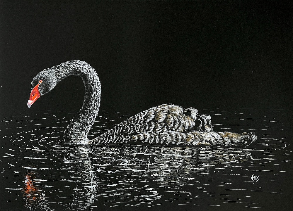 Black swan – Black Colourfix Art Spectrum Paper or Black Canson Mi-Teintes Touch Pastel Paper A3 cut in half.