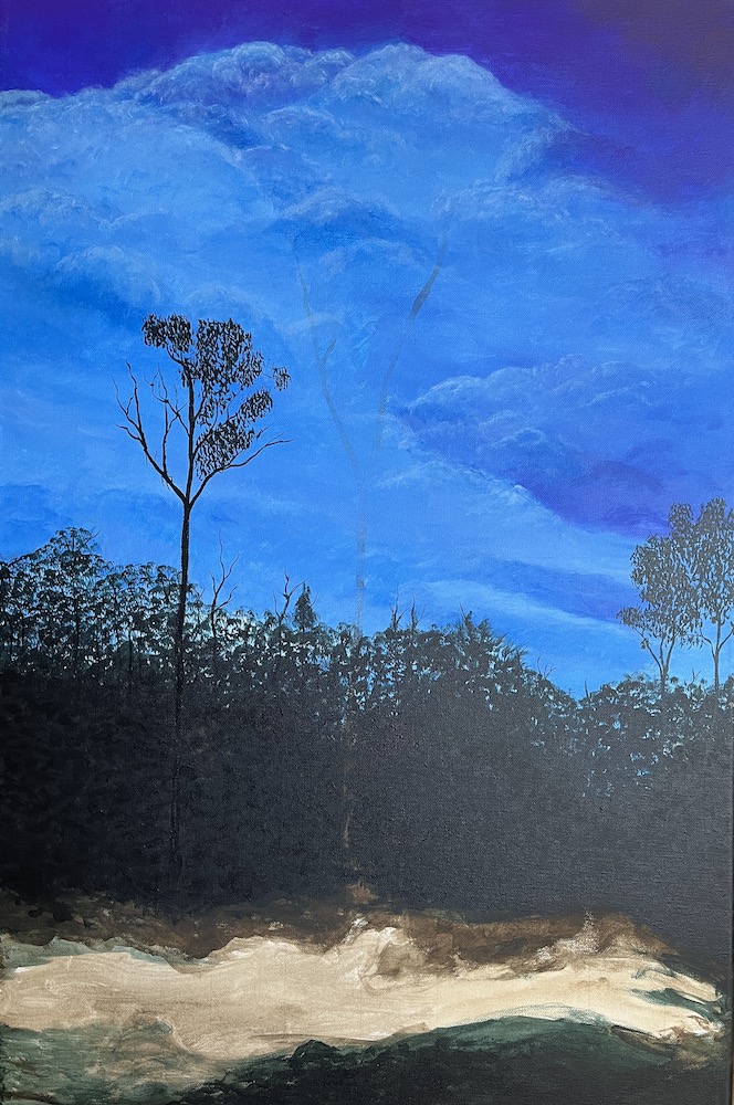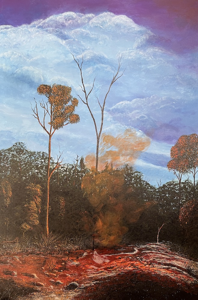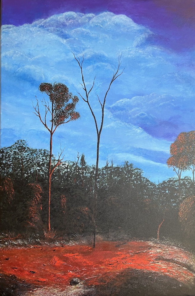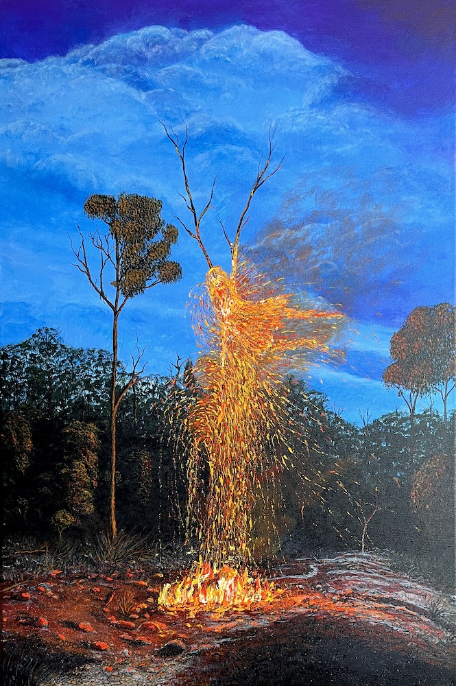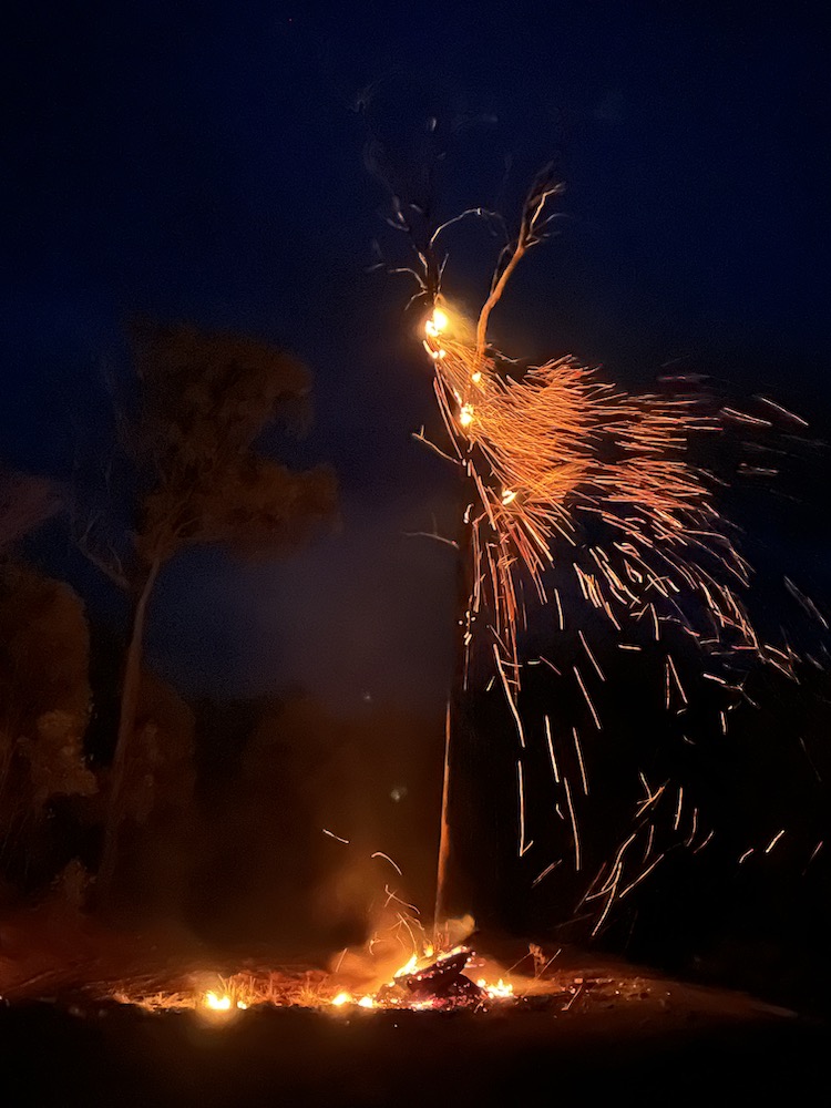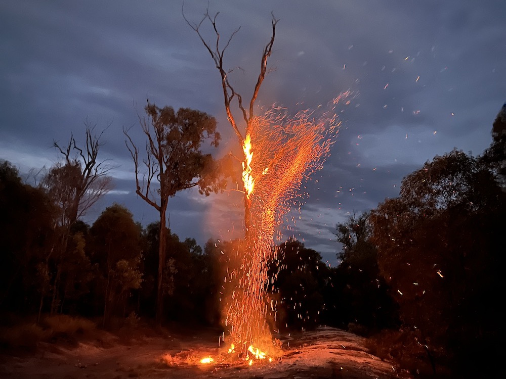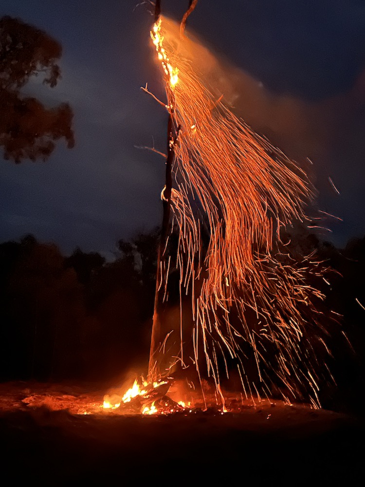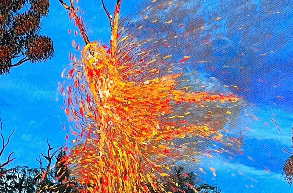 I was trying to recreate an earlier art work of this tree on fire called “bush fireworks”.