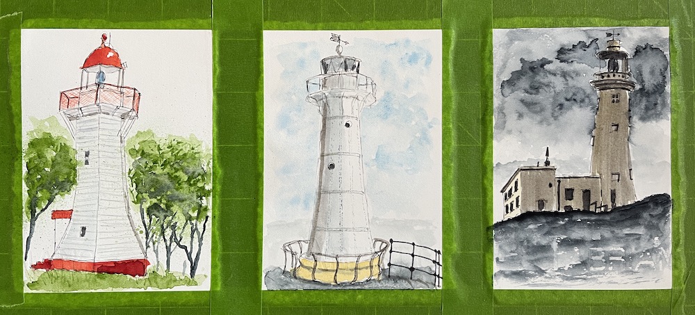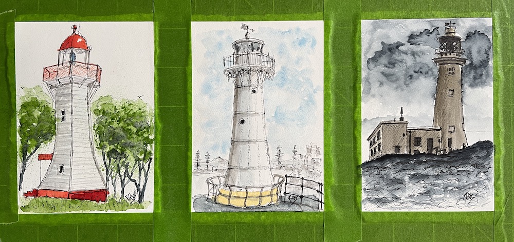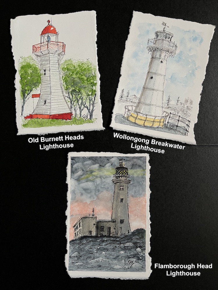 Last year I thought I would do something a little different and paint three lighthouses and give them away on my instagram account. Two of theses lighthouses were in Australia the other one was from my previous trip to the UK.