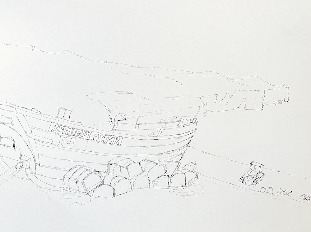 Adding waterproof Ink over the pencil so this will not bleed during the watercolour stage.