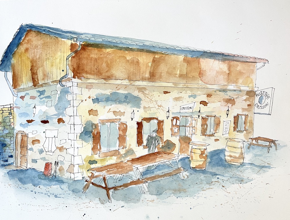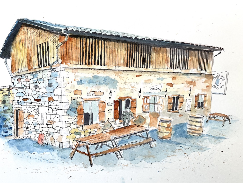 Drawing in all the fine details in ink and adding a little more watercolour.