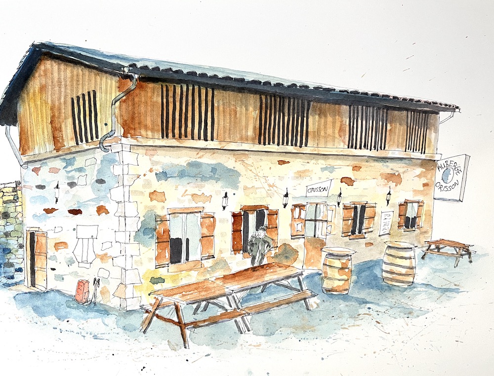 In 2014 I walked the Camino with my mother and this was one of our first stops, to get a hot chocolate and some cake. There was so much fog we didn’t get to see any of the stunning Pyrenees scenery which was a little disappointing on our first day hiking.