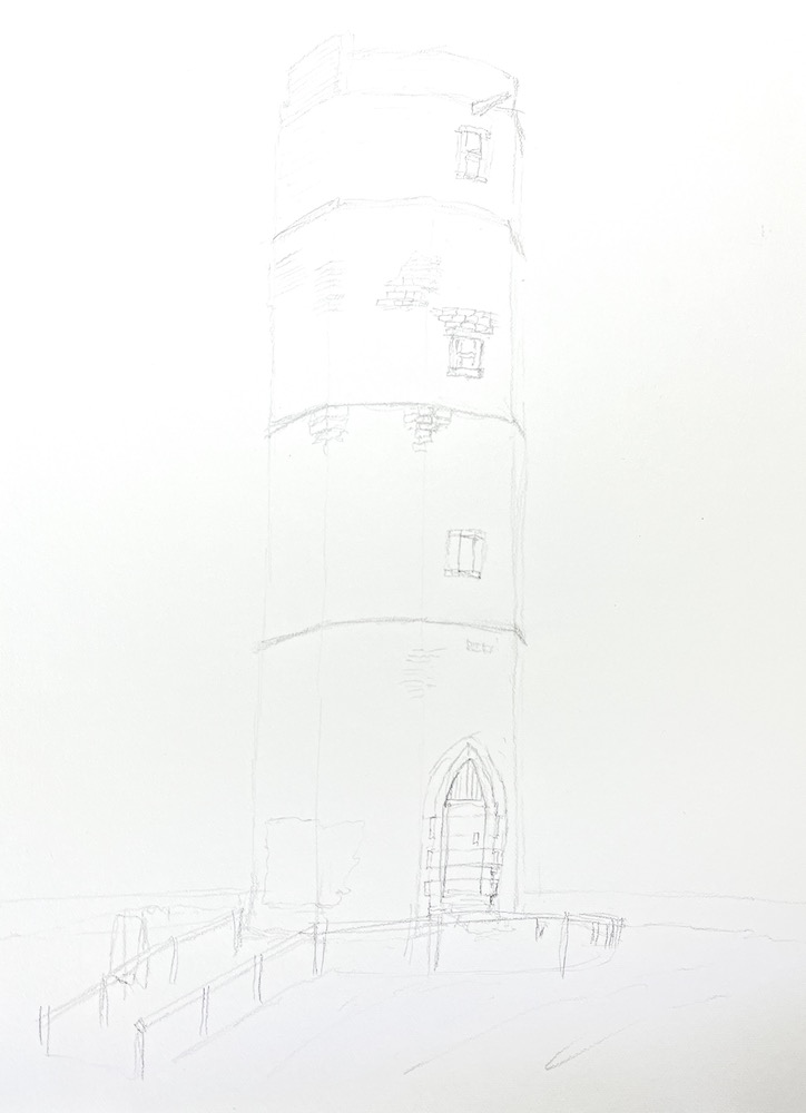 Adding waterproof Ink over the pencil so this will not bleed during the watercolour stage.
