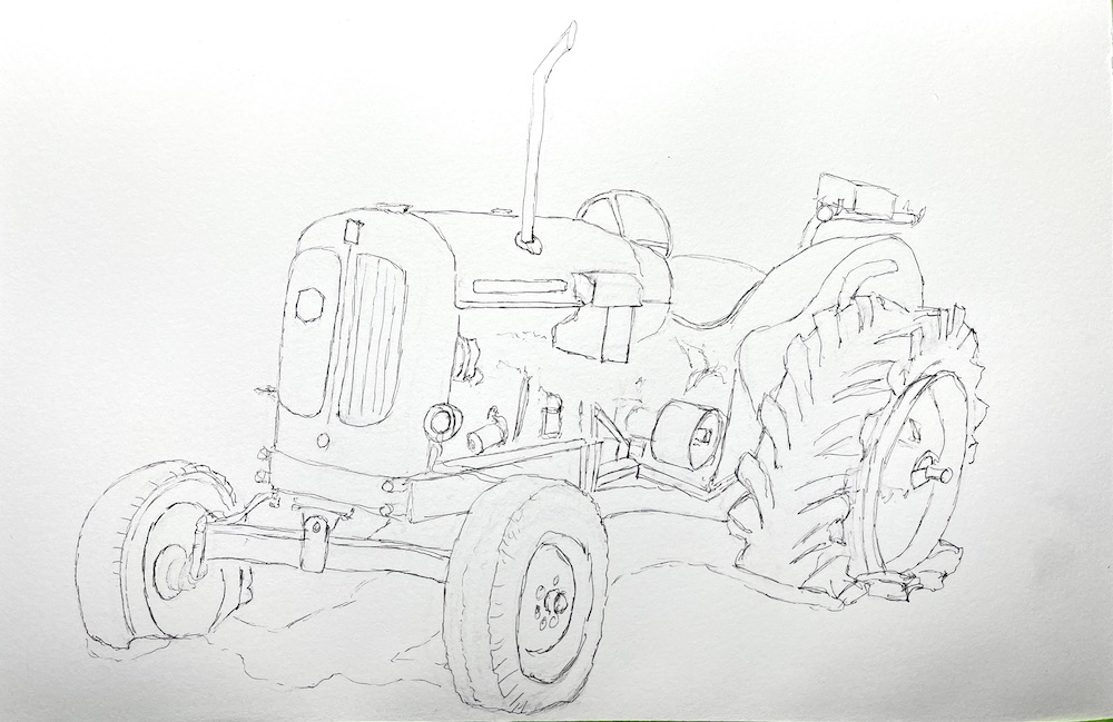 Drawing in all the fine details in ink I discovered that something was missing to complete the image so I added a barbed wire fence.