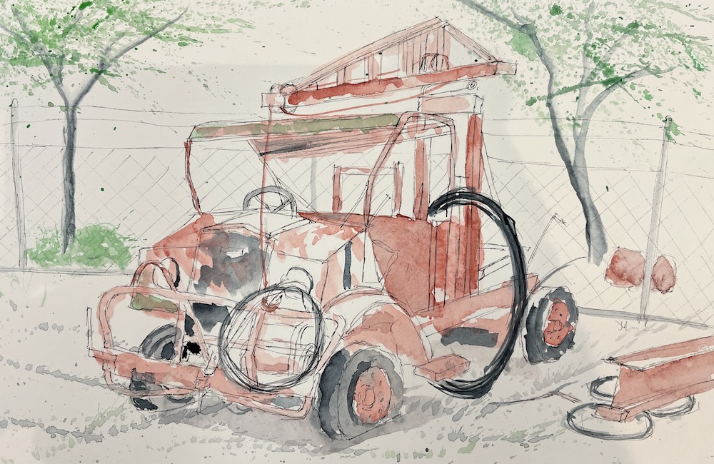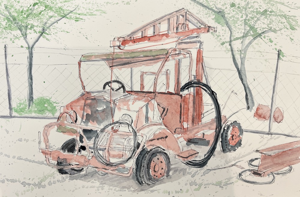 The last one from Pioneer Park Dalby as I decided only to make five greeting cards. This blitz crane was a bit of a perspective challenge because of the bent parts of metal and the circular wire resting against the bodywork.