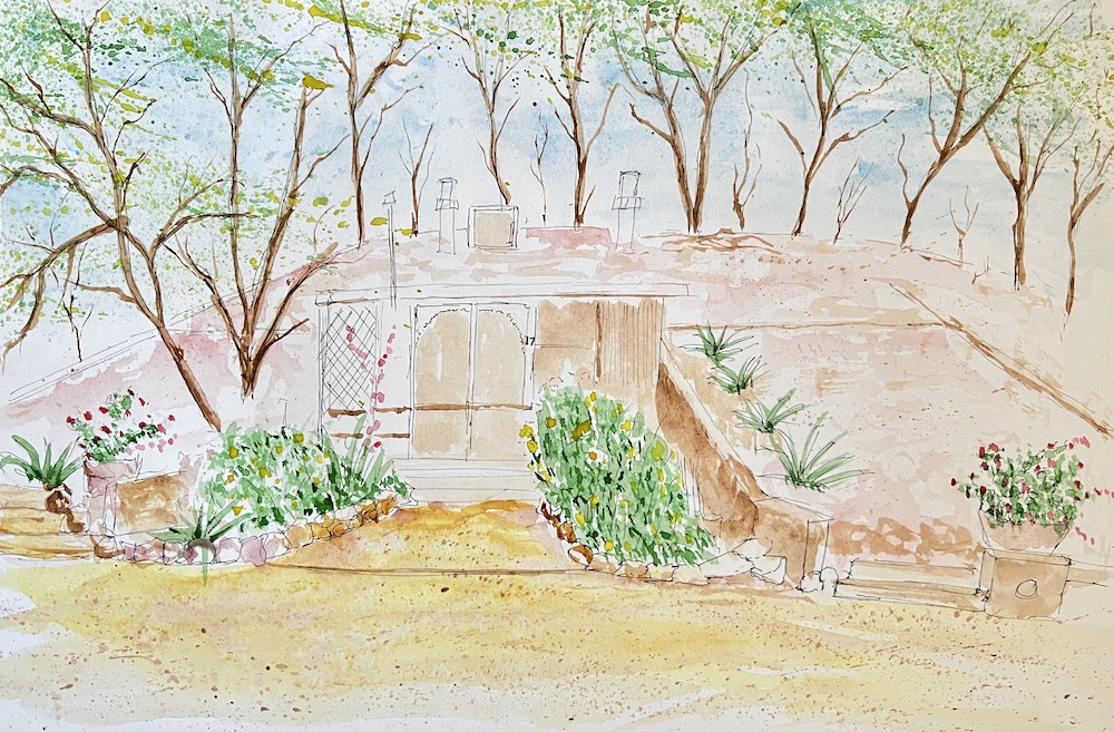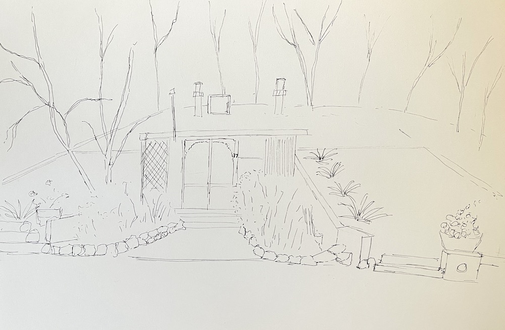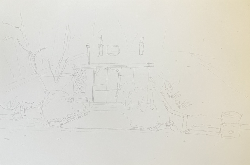Unless you have visited the bunkers I can imagine that this sketch would be hard to workout what it is supposed to be, a war bunker built into the side of a hill.