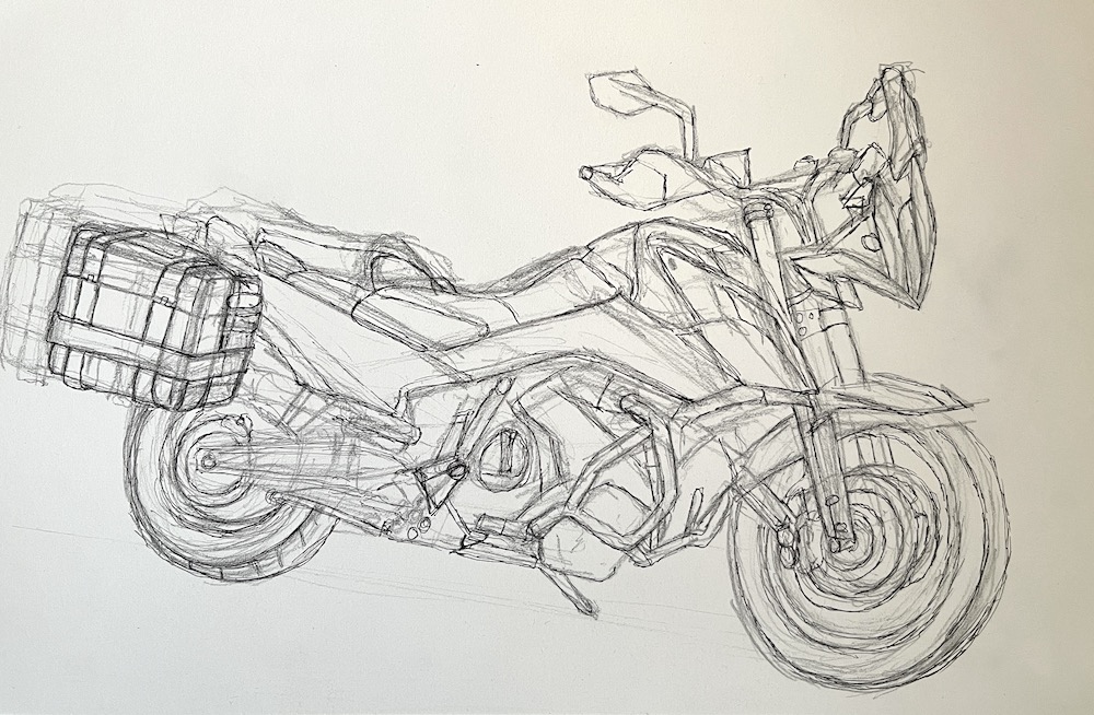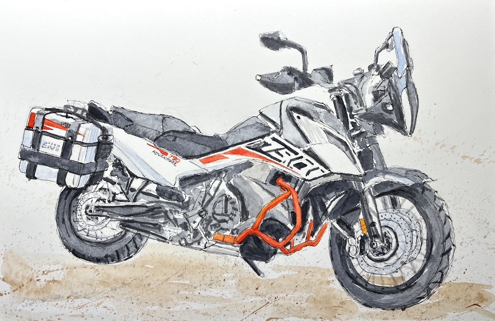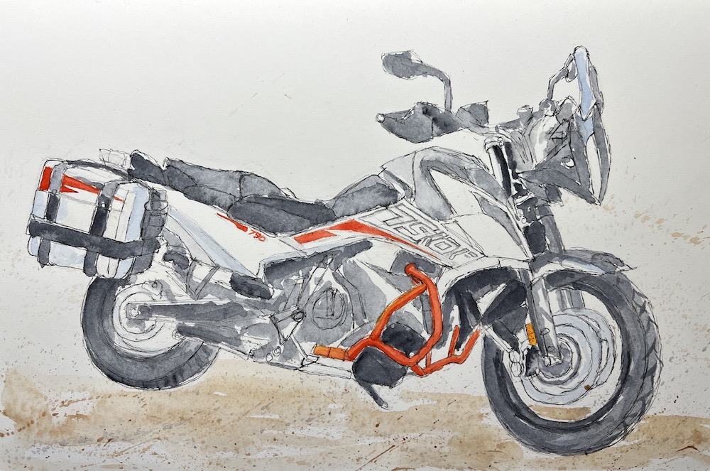They also had a support guy on a road bike that would go with them incase of any problems. On the second last day I got talking to the support guy and he wanted me to sketch his bike, and this is the result.