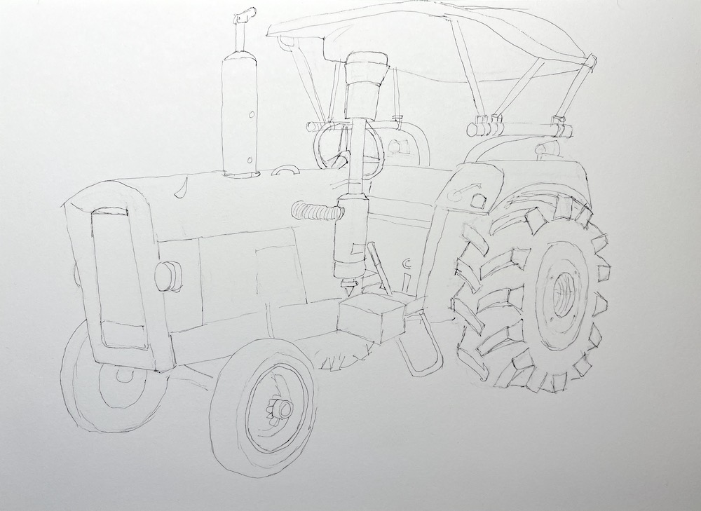 Another one from the Pioneer Park at Dalby, yellow is my favourite colour so I’m always drawn to yellow tractors and crawlers. This tractor had more box shapes than the other tractors so it was much easier to sketch using large rectangles. I always think yellow and black is a good marriage of colours and reminds me of my yellow and black kayak.