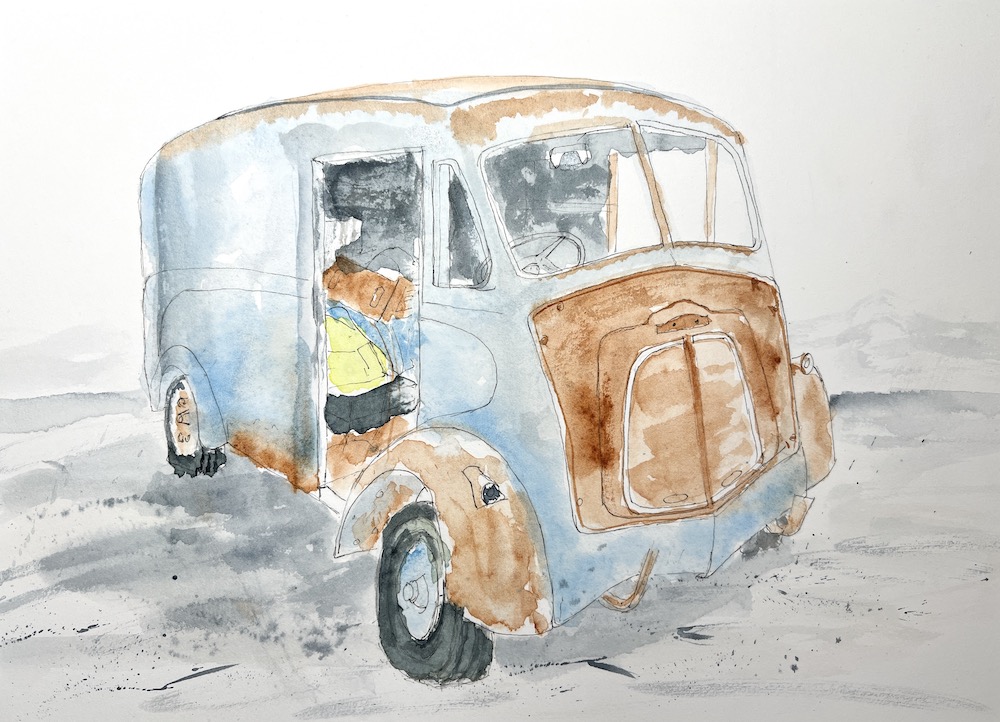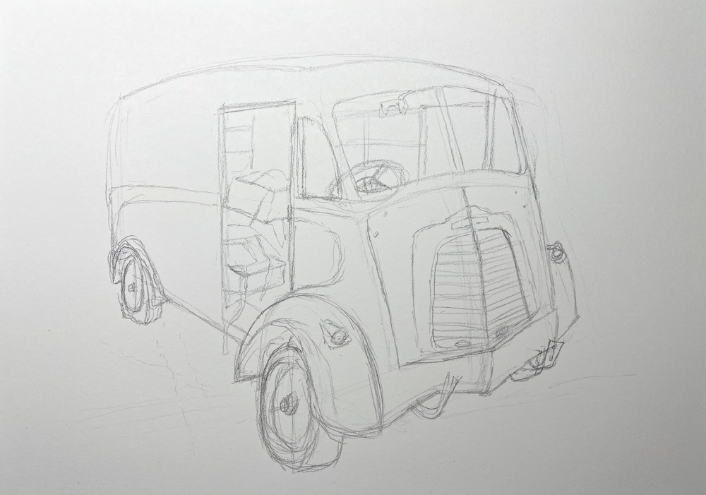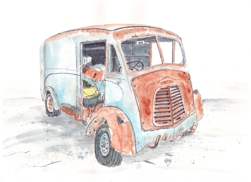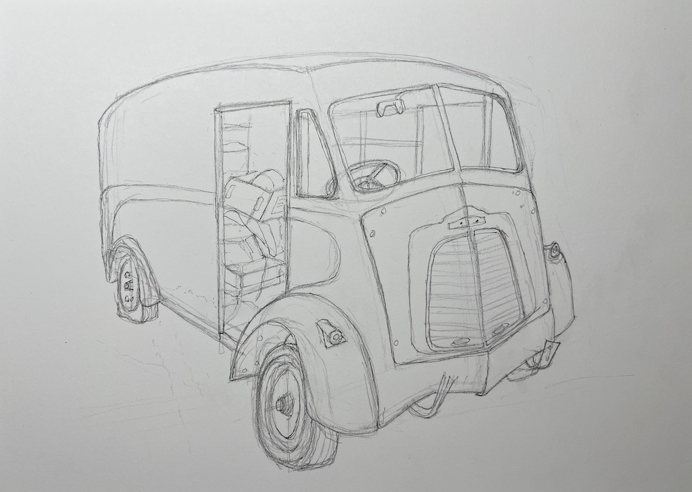 Another one from the Miles historical village and museum that hasn’t made it to a greeting card just yet. I prefer to paint old cars that are being restored as they seem to have more character than a finished product looking all shiny and new.