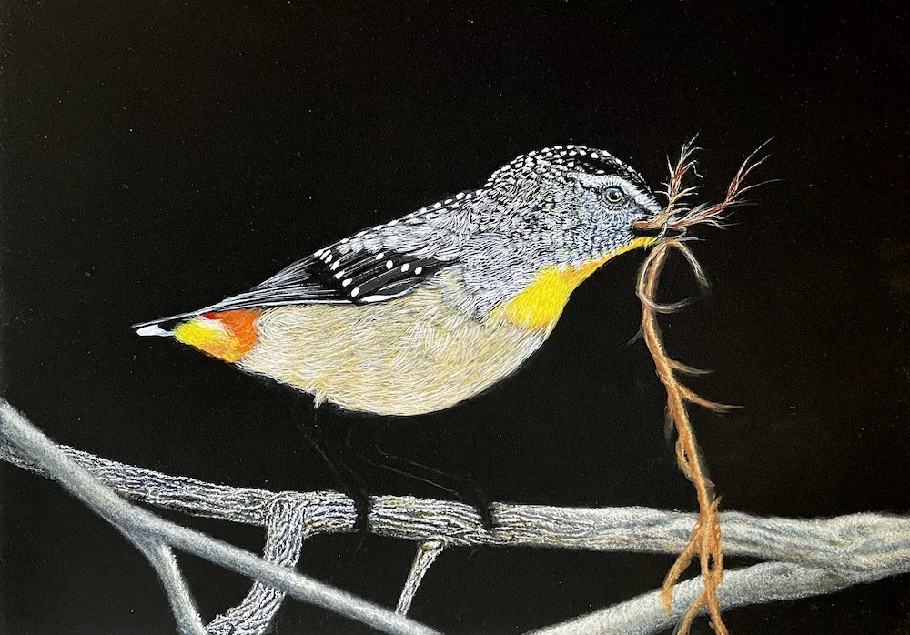 The next week I got a few extra birds when I had a chance to get my camera out, but it wasn’t until I met a few birders and they suggested going out at 6am. So I dragged my butt out of bed and walked all over the park at 6am for two hrs and got even more birds. Then one day I came across a pair of spotted pardalote’s building a nest and this definitely got me hooked on bird photography.