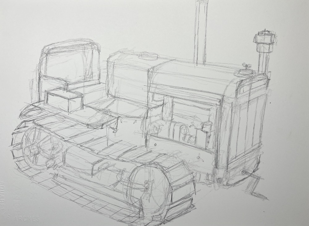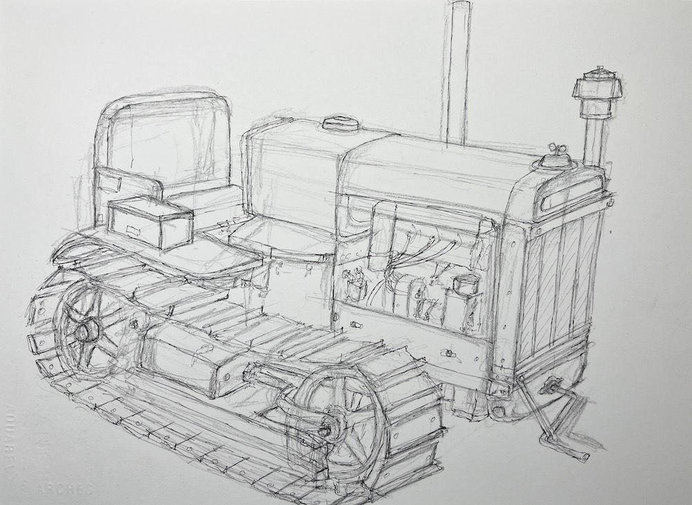 Tractors, crawlers, trucks and wagons our neighbour has so much to sketch, I feel I could be here years just sketching his vast collection of vehicles. I must admit I do struggle with the crawlers tracks and this did cause me a little stress while sketching it.