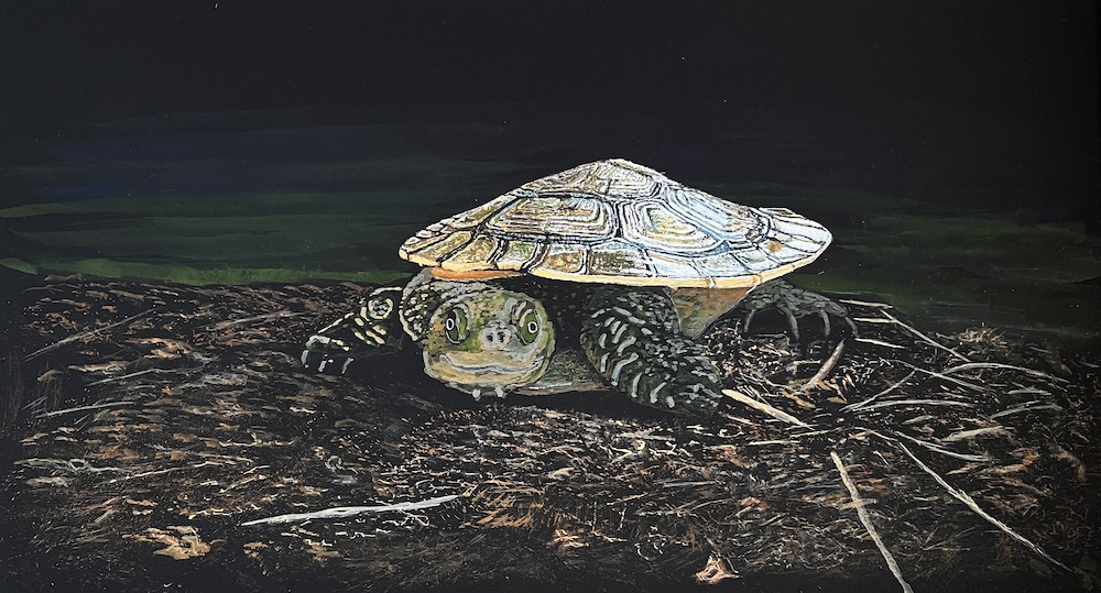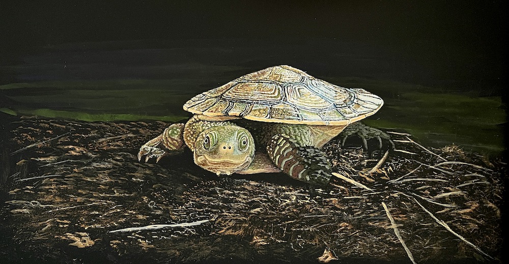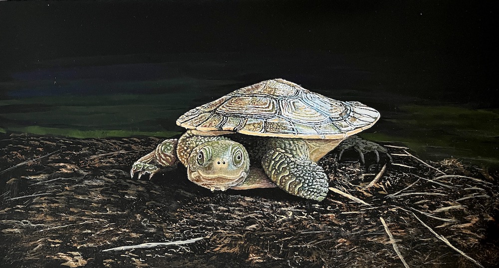 My cousin asked me if I could paint his girlfriends pet turtle for Christmas. Normally with two upcoming exhibitions to get ready for I would have said no, but it was my cousin so I said yes. Now since it’s a surprise I can’t post this until after Christmas. I was so mean I rejected the first set of photos I asked my cousin to make sure you get down low and have the turtle facing you not away from you.