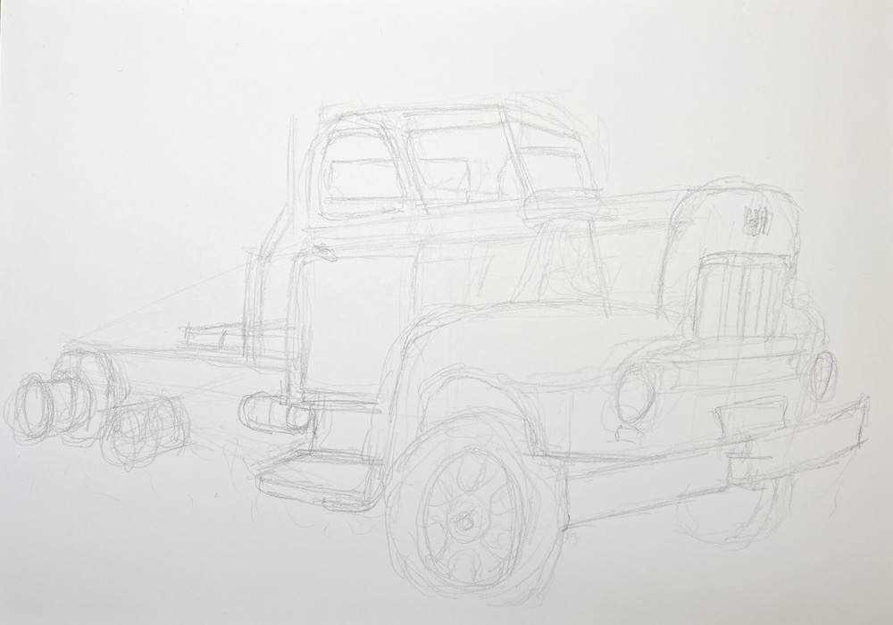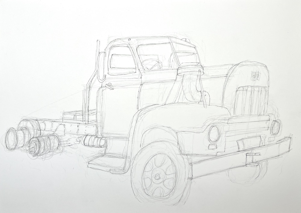 I must say, I have really started to enjoy sketching old trucks and tractors this past year as each one is so different and comes with its own challenges. The other aspect of painting old trucks and tractors is the blokes that visiting my gallery with their significant others are now more engaging than when I only a collection of animals and landscapes to view.