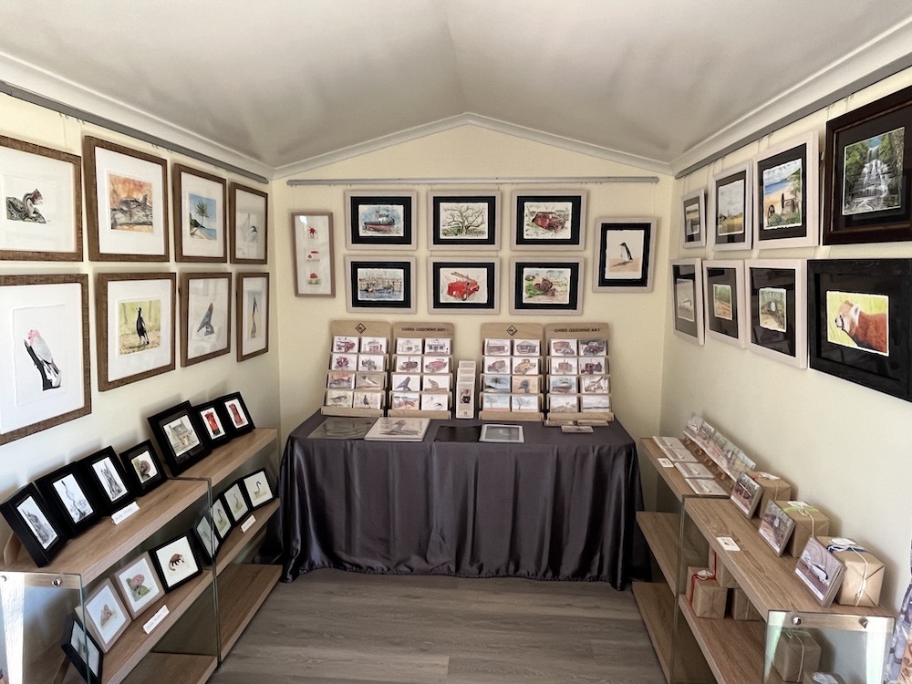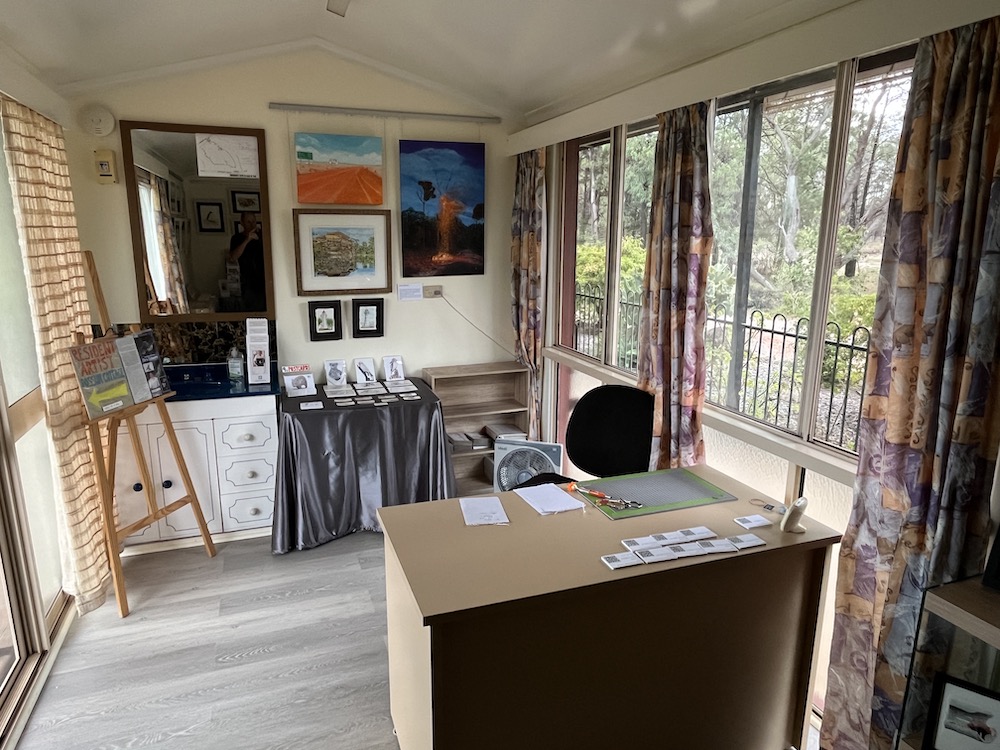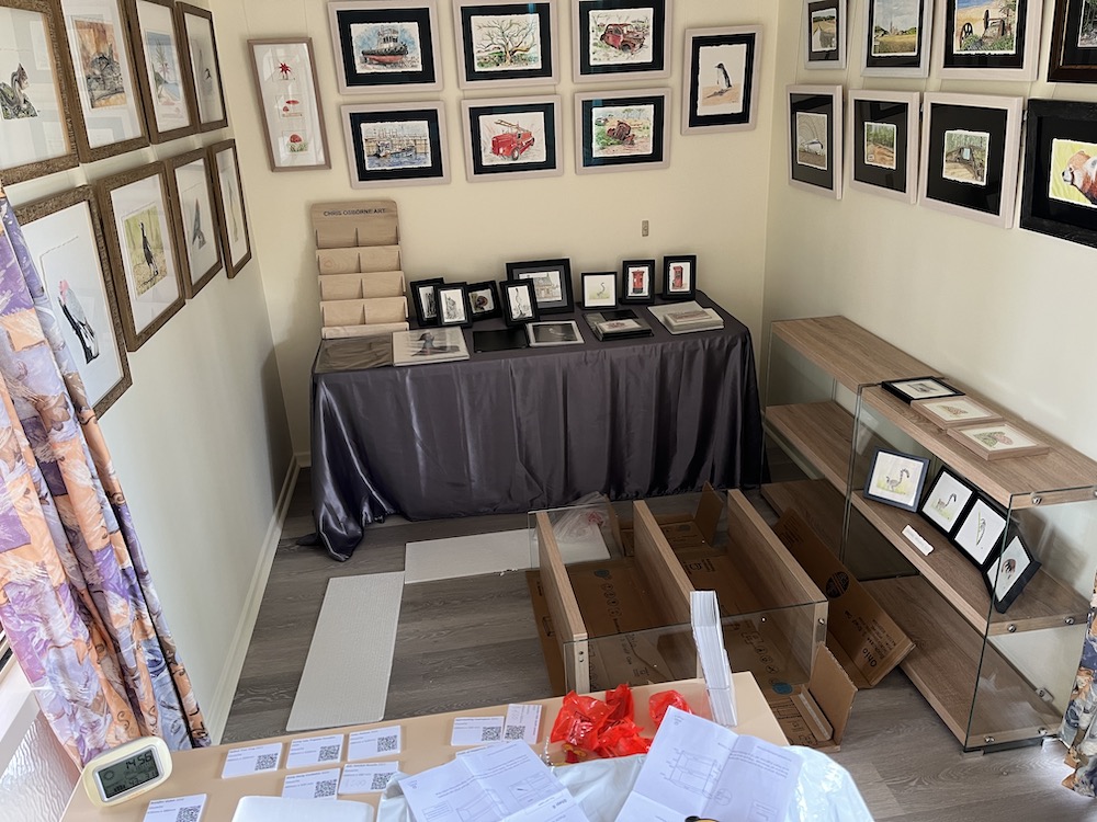 One year later and my little gallery has been a success. People love chatting to me and watching me create art at my desk.