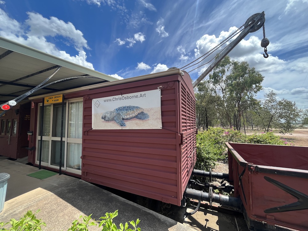 I finally convinced the owners of Possum Park to let me convert an old train carriage into my very own little art gallery. For the past three years I have been selling my artworks to tourists that stay at Possum Park Caravan & Camping park from the foyer of my cottage. Unfortunately this was always a little cramped and could only hold two or three people at a time, so I had a new idea of relocating to the other end of Possum Park.
