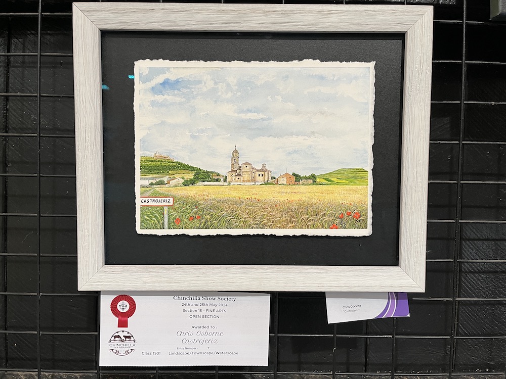 I don’t have many landscapes at the moment because I’ve been concentrating on old cars and tractors for my recent exhibition. This was such a beautiful scene from my 2018 Camino when I walked 900km across Spain.