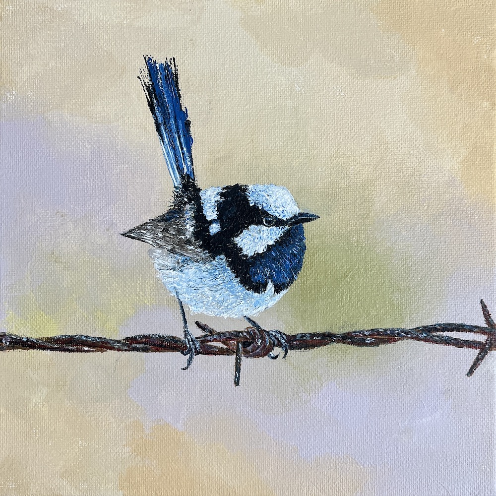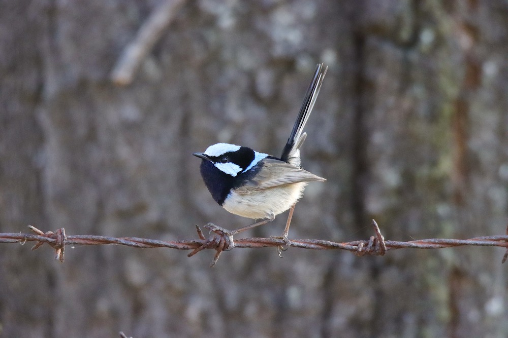 This little superb fairywren was hopping between the old World War II 17 strand barbwire fence that runs around the property at Possum Park. They are so hard to photograph because they just don’t stay still and they light blue seems to reflect the sun and most of the time turns out a white colour.