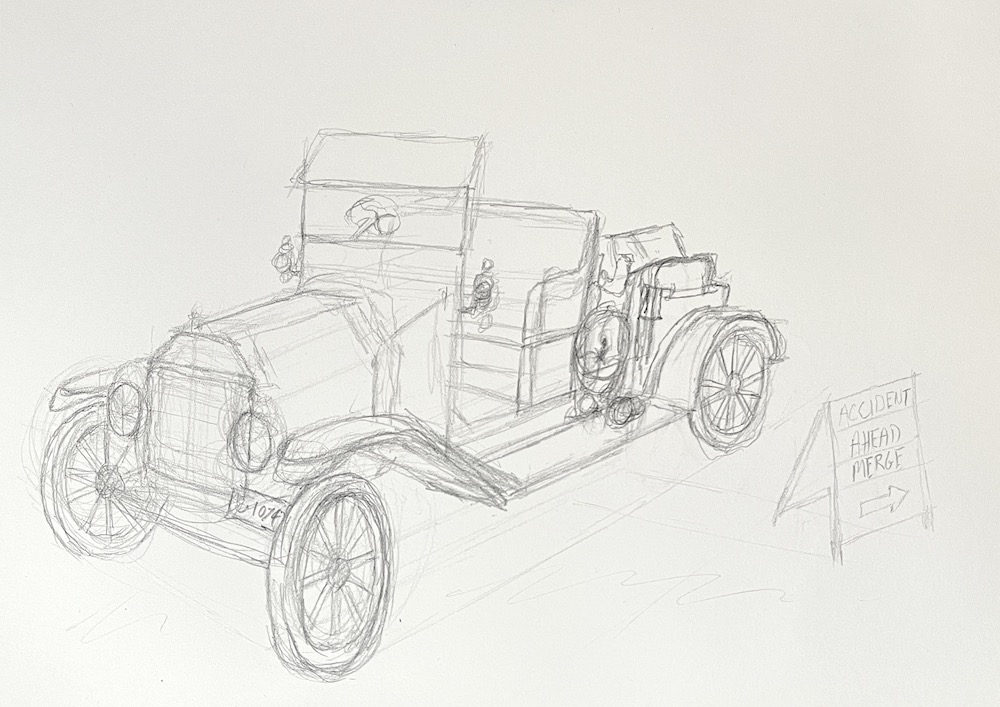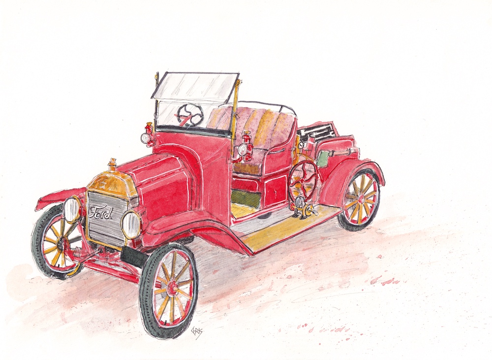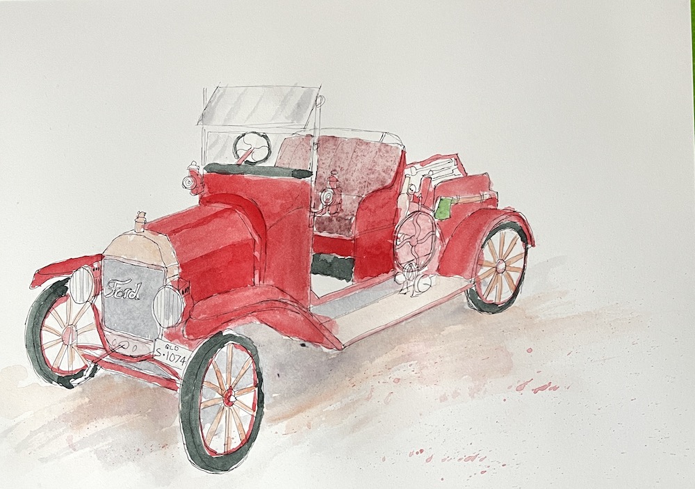 I visited the Highfields Pioneer Village and they have a nice subsection called Toowoomba Fire Brigade Historical Society Inc. They have a collection of amazing fire engines that I’m slowly paining one by one. One of the volunteers was kind enough to move some tables and displays so I could get a better photo to sketch from.