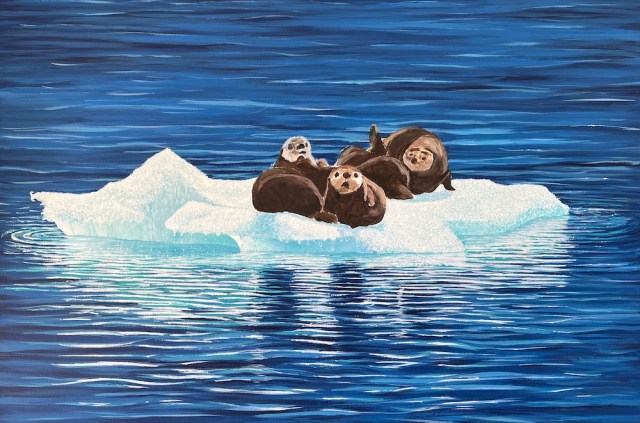 This is yet another gem from my 2024 escapade through Alaska and Canada! I had a blast painting those growler icebergs, which might as well be the divas of the Arctic, and decided my next masterpiece needed to be fancier. So, I cranked up the detail and added extra drips to the iceberg—because who doesn’t love a little iceberg drool, right? To top it off, I threw in some curious otters, giving their best “What is that floating buffet?” look as the cruise ship casually glided by.